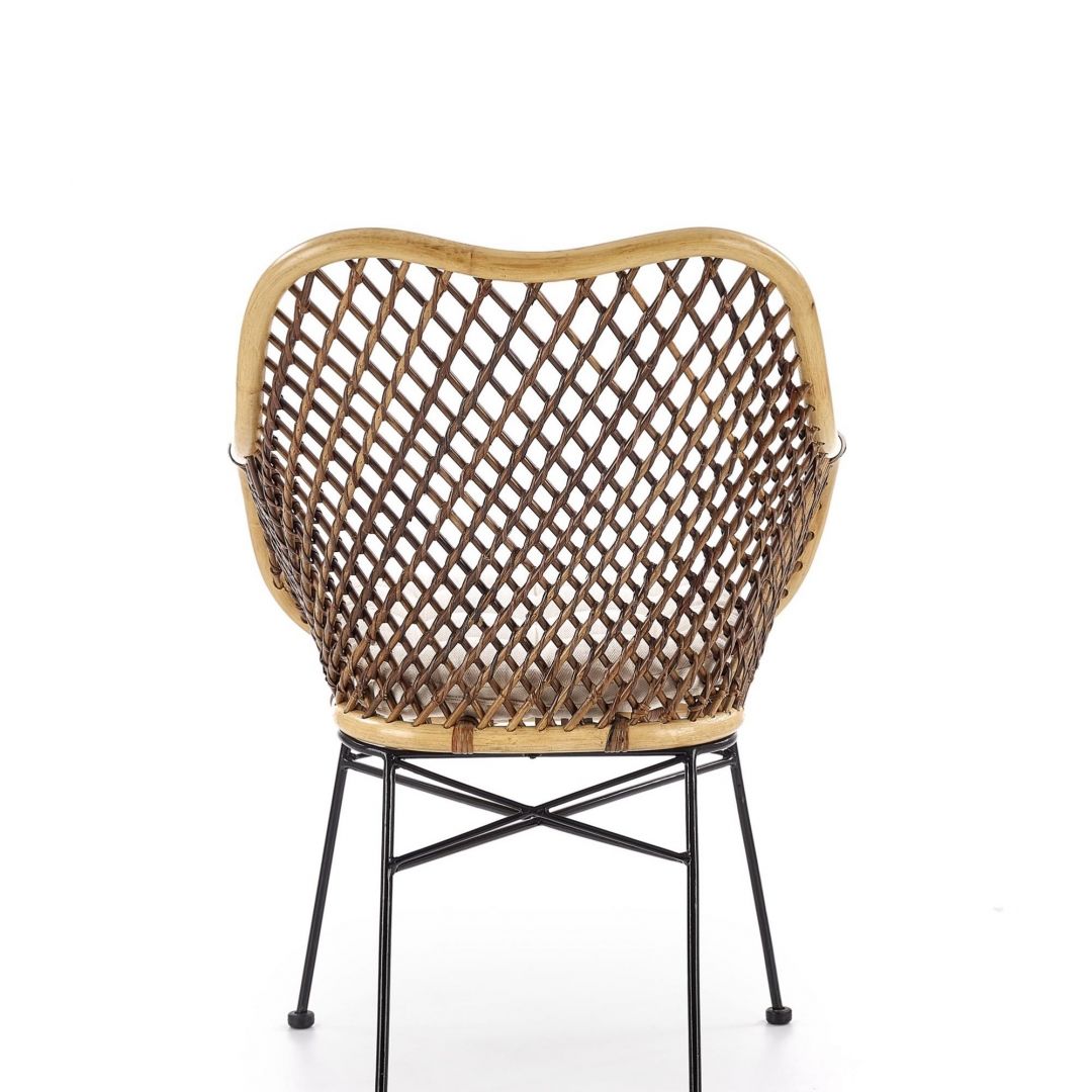 Jídelní židle K 336 - je elegantní židle vyrobena v kombinaci lakované oceli v černé barvě a pohodlného sedáku vyrobeného z přírodního ratanu.