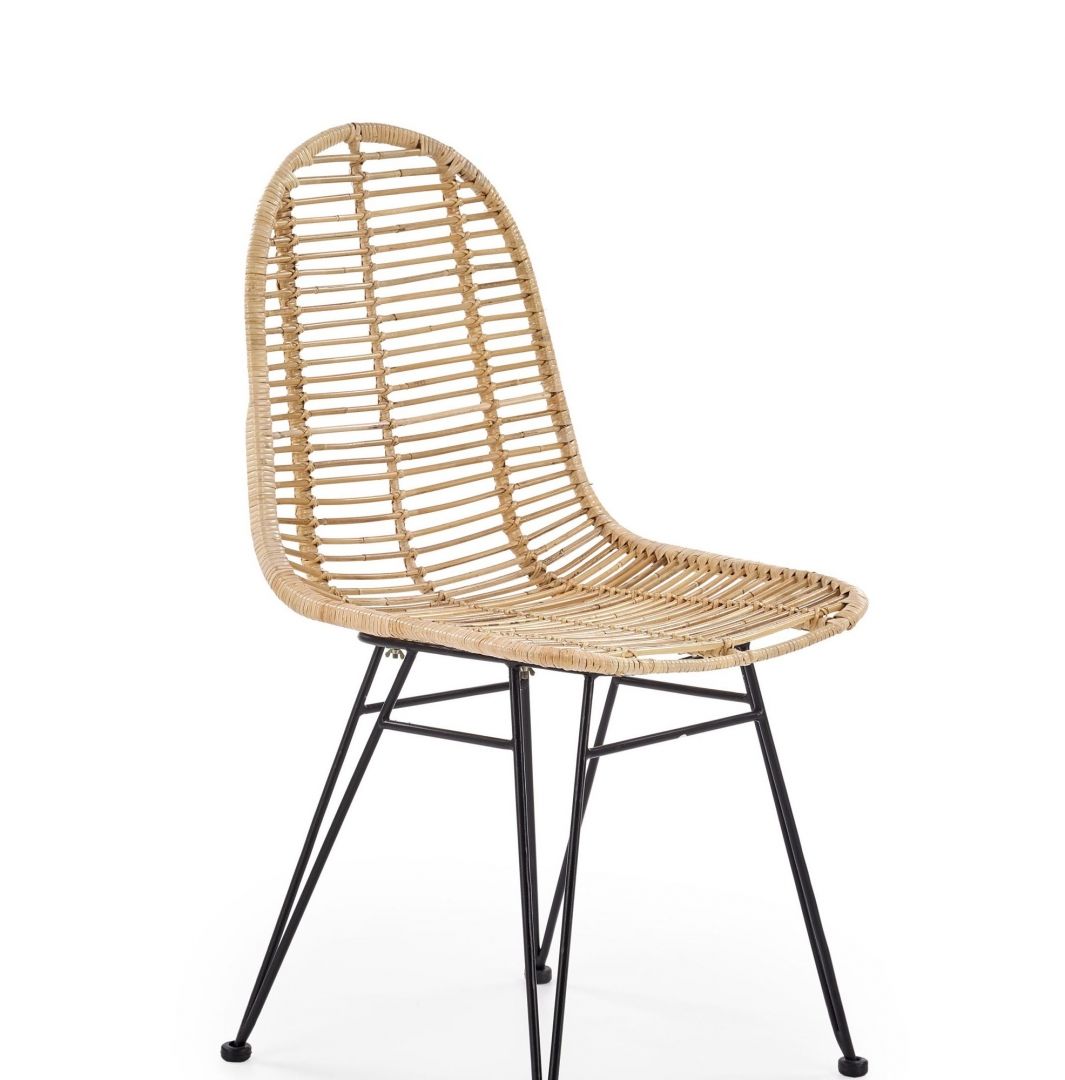Jídelní židle K 337 - je elegantní židle vyrobena v kombinaci lakované oceli v černé barvě a pohodlného sedáku vyrobeného z přírodního ratanu.
