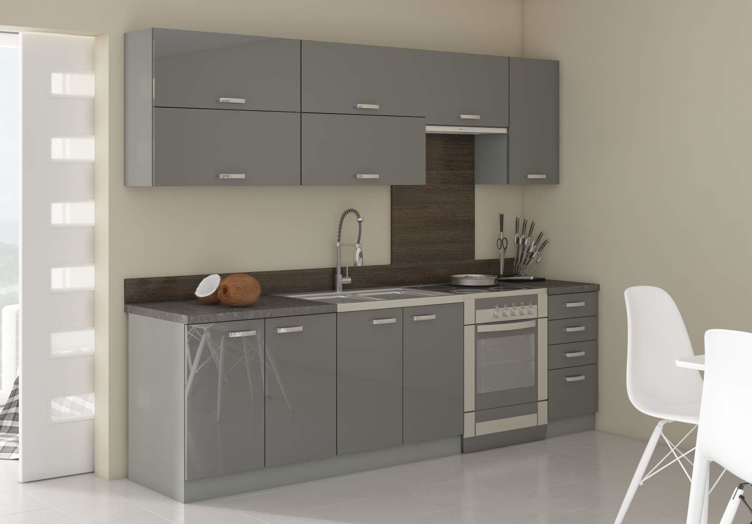 Kuchyňská linka GREI - vaření je radost, zábava a společné vzpomínky. Kvalitní kuchyňská linka z MDF s dvířky v lesku vám zpříjemní chvilky strávené ve vaší kuchyni. Velikost kuchyňské linky lze sestavit 180, 200, 260 anebo vlastní sestavu.