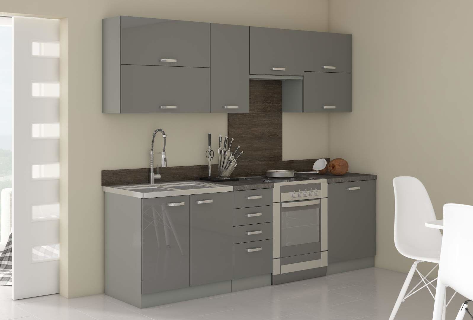 Kuchyňská linka GREI - vaření je radost, zábava a společné vzpomínky. Kvalitní kuchyňská linka z MDF s dvířky v lesku vám zpříjemní chvilky strávené ve vaší kuchyni. Velikost kuchyňské linky lze sestavit 180, 200, 260 anebo vlastní sestavu.