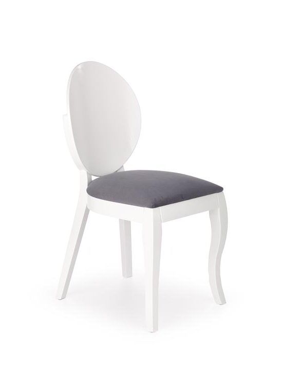 Jídelní židle VERDI - je pohodlná židle ve stylovém provedení vyrobena z masivu buku v bílém barevném odstínu a kvalitní potahové látky v šedé barvě.