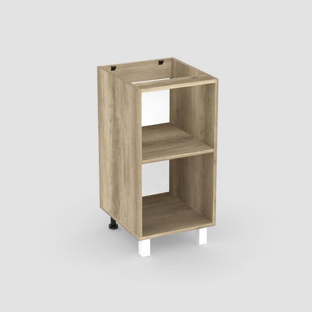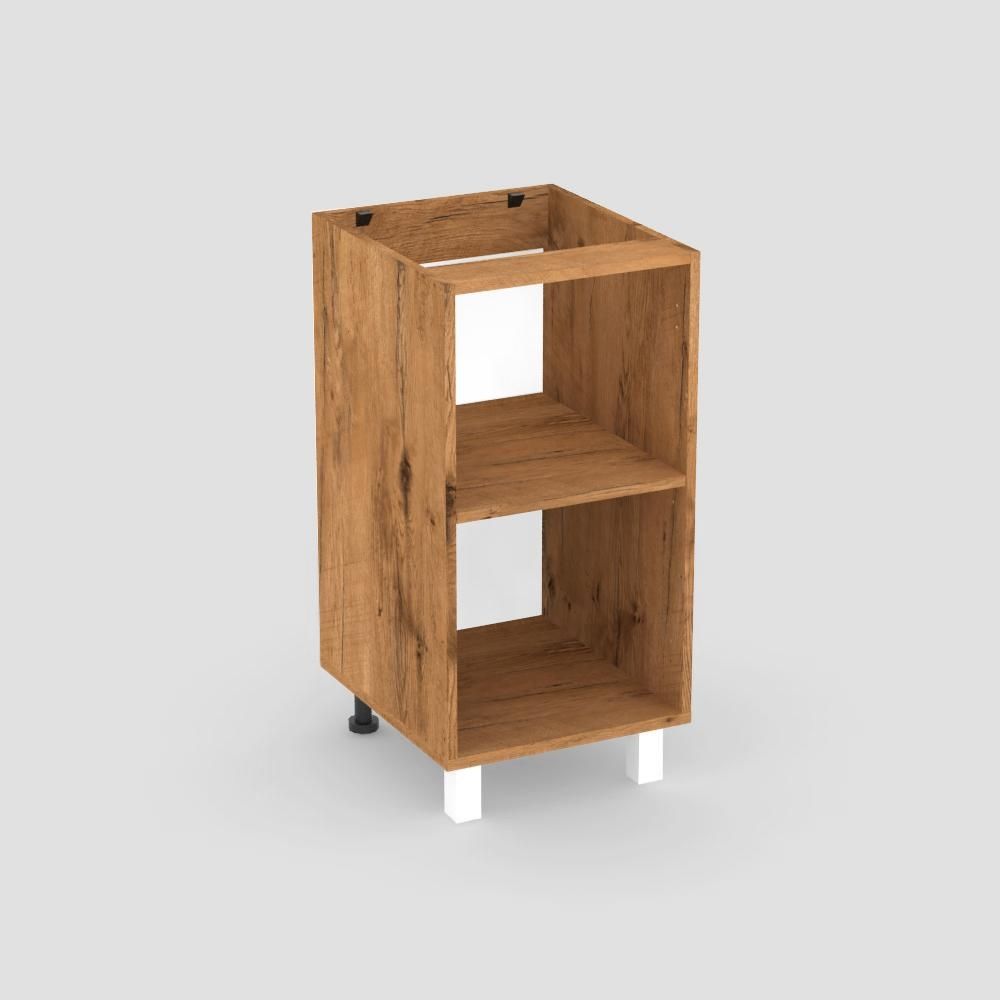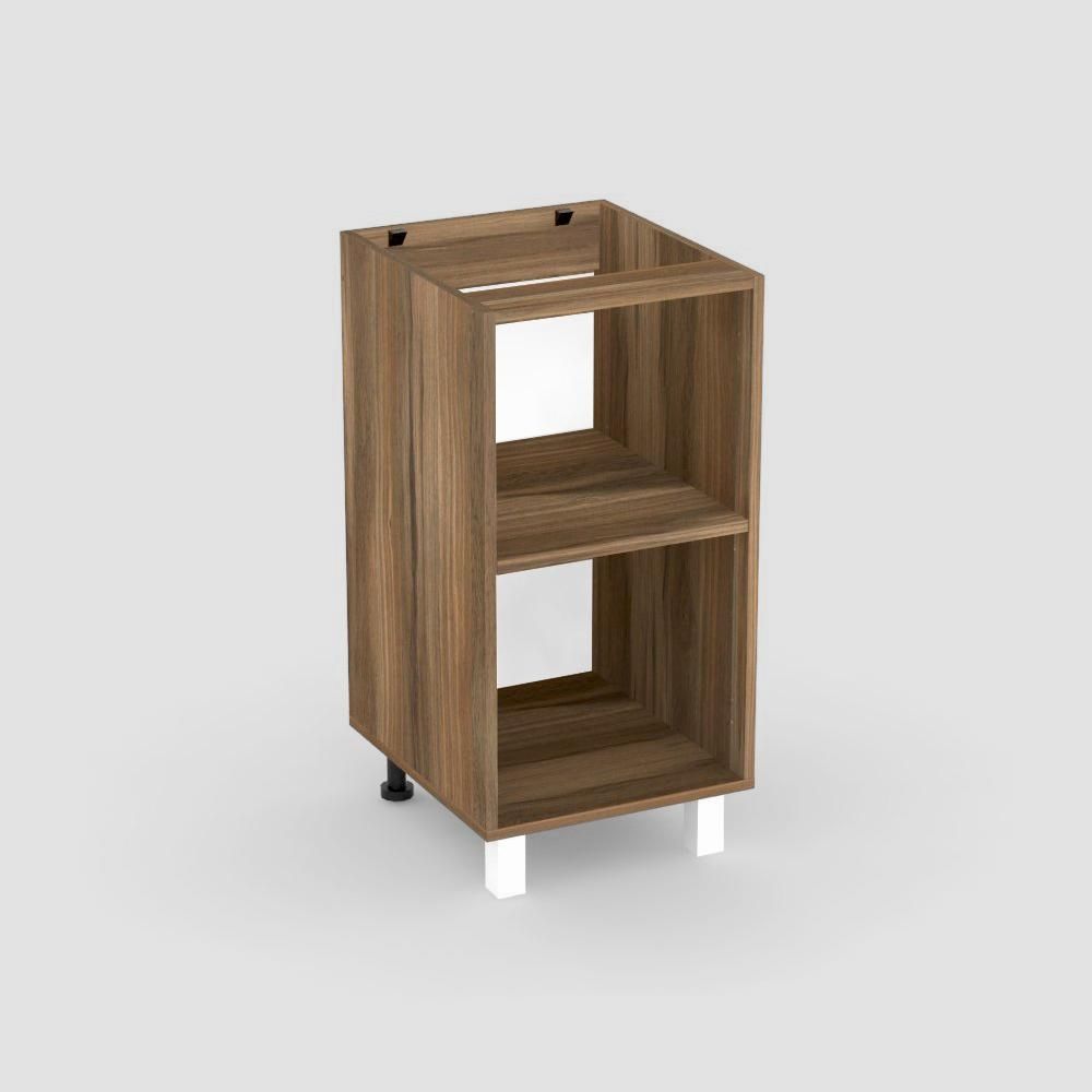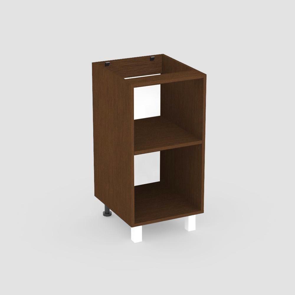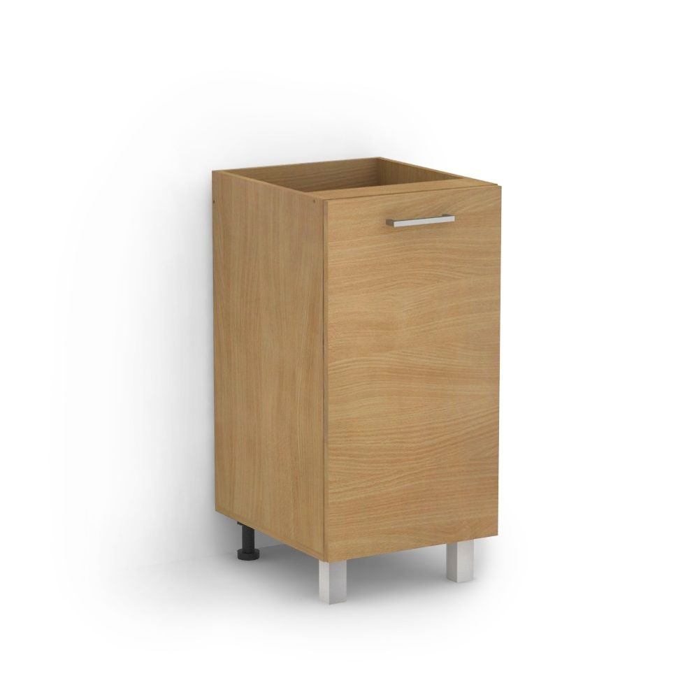Spodní kuchyňské skříňky jsou na nožkách, vpředu jsou elegantní kovové nožičky a v zadní části jsou nastavitelné nohy z černého plastu. Kuchyňská skříňka je vyrobena z kvalitní laminované DTD desky. Spodní skříňka do kuchyně je uzavíratelná praktickými dvířky se širokými kovovými úchyty v levé horní části dvířek. Dvířka skříněk jsou univerzální tj. levá i pravá.