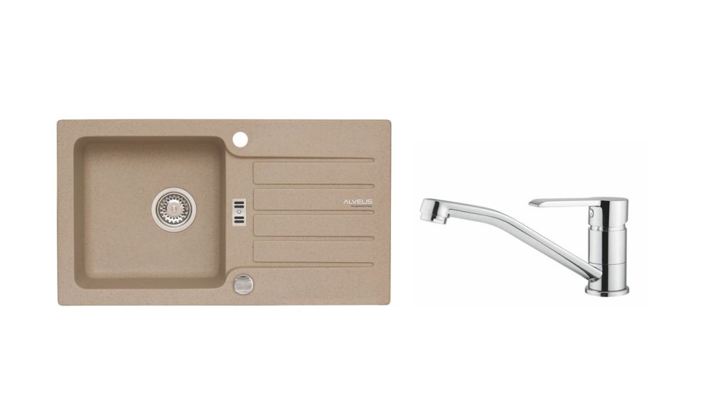 Vestavěný dřez, univerzál. Provedení : granitový dřez s odkapem Vnější rozměr: 775 x 430 mm Rozměr vaničky: 350x350x160 mm Exentický sítkový ventil 3 1/2 s přepadem, sifon pro úsporu místa s odbočkou na myčku Úchyty a těsnění pro upevnění dřezu v balení S otvorem pro baterii Návod pro instalaci v obrázcích na obale Instalace do skříňky o šířce 500 mm Váha: 17,1 kg Rozměr balení (mm): 864x560x220 Baterie Ruta Chrom Stojánková baterie Otočné ramínko Rozměr: 215x328 mm Provední chrom