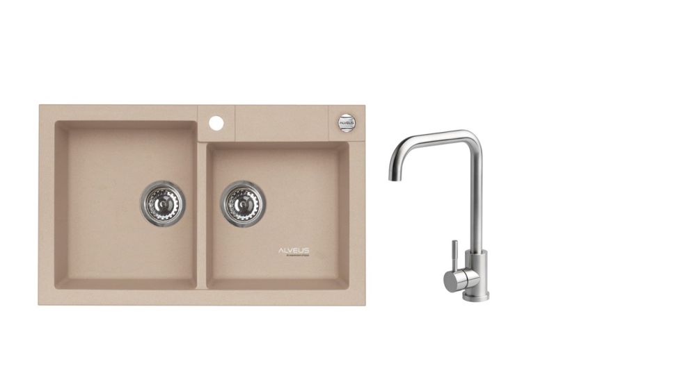Vestavěný dřez, univerzál. Provedení : granitový dřez Vnější rozměr: 780 x 480 mm Rozměr vaničky: 340 x 400 x 180 mm 340 x 350 x 180 mm Exentrický sítkový ventil 3 1/2 s přepadem, sifon pro úsporu místa s odbočkou na myčku Úchyty a těsnění pro upevnění dřezu v balení S otvorem pro baterii Návod pro instalaci v obrázcích na obale Instalace do skříňky o šířce 800 mm Váha: 21,45 kg Rozměr balení (mm): 865x560x220 Baterie Angel Chrom Stojánková baterie Otočné ramínko Rozměr: 215x342 mm Provední chrom
