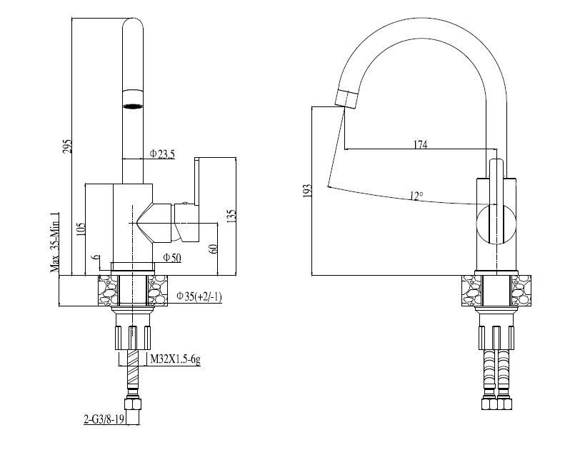 Vestavěný dřez, univerzál. Provedení : granitový dřez s odkapem Vnější rozměr: 470 x 500 mm Rozměr vaničky: 390 x 340 x 195 mm Exentrický sítkový ventil 3 1/2 s přepadem, sifon pro úsporu místa s odbočkou na myčku Úchyty a těsnění pro upevnění dřezu v balení S otvorem pro baterii Předfrézované dva otvory Návod pro instalaci v obrázcích na obale Instalace do skříňky při montáži: I- o šířce 450 mm, U- o šířce 600 mm Váha: 9,7 kg Rozměry balení (mm): 598x584x263 Baterie Tonia Chrom Materiál: CHROM Vysokotlaká, otočná Rozměry: 174x320 mm Váha: 1,15 Kg