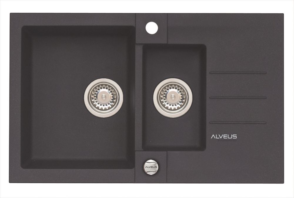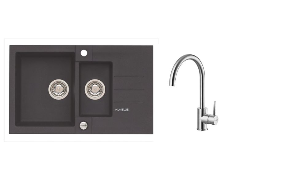 Vestavěný dřez, univerzál. Provedení : granitový dřez s odkapem Vnější rozměr: 780 x 480 mm Rozměr vaničky: 320 x 400 x 180 mm 180 x 300 x 120 mm Exentrický sítkový ventil 3 1/2 s přepadem, sifon pro úsporu místa s odbočkou na myčku Úchyty a těsnění pro upevnění dřezu v balení S otvorem pro baterii Návod pro instalaci v obrázcích na obale Instalace do skříňky o šířce 600 mm Váha: 17,45 kg Rozměr balení (mm): 865x560x220 Elza Vysokotlaká baterie otočné ramínko rozměr:216 x 351 mm provedení: chrom/barevný nástřik