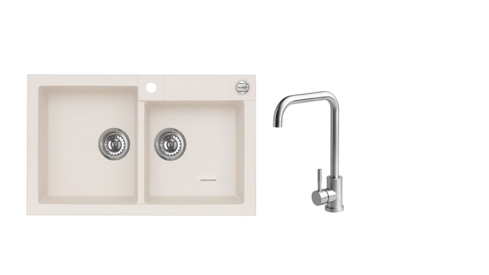 Vestavěný dřez, univerzál. Provedení : granitový dřez Vnější rozměr: 780 x 480 mm Rozměr vaničky: 340 x 400 x 180 mm 340 x 350 x 180 mm Exentrický sítkový ventil 3 1/2 s přepadem, sifon pro úsporu místa s odbočkou na myčku Úchyty a těsnění pro upevnění dřezu v balení S otvorem pro baterii Návod pro instalaci v obrázcích na obale Instalace do skříňky o šířce 800 mm Váha: 21,45 kg Rozměr balení (mm): 865x560x220 Baterie Angel Chrom Stojánková baterie Otočné ramínko Rozměr: 215x342 mm Provední chrom