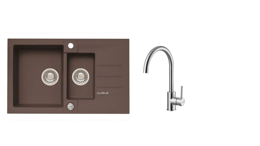 Vestavěný dřez, univerzál. Provedení : granitový dřez s odkapem Vnější rozměr: 780 x 480 mm Rozměr vaničky: 320 x 400 x 180 mm 180 x 300 x 120 mm Exentrický sítkový ventil 3 1/2 s přepadem, sifon pro úsporu místa s odbočkou na myčku Úchyty a těsnění pro upevnění dřezu v balení S otvorem pro baterii Návod pro instalaci v obrázcích na obale Instalace do skříňky o šířce 600 mm Váha: 17,45 kg Rozměr balení (mm): 865x560x220 Elza Vysokotlaká baterie otočné ramínko rozměr:216 x 351 mm provedení: chrom/barevný nástřik