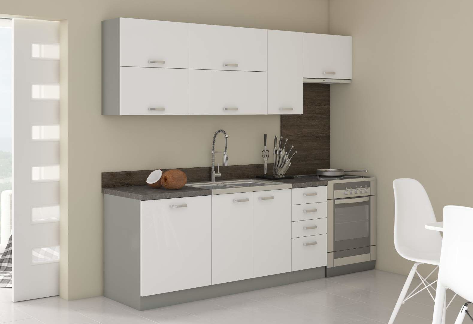 Kuchyňská linka BIANCA - vaření je radost, zábava a společné vzpomínky. Kvalitní kuchyňská linka z MDF s dvířky v lesku vám zpříjemní chvilky strávené ve vaší kuchyni. Velikost kuchyňské linky lze sestavit 180,200, 260 anebo vlastní sestavu.