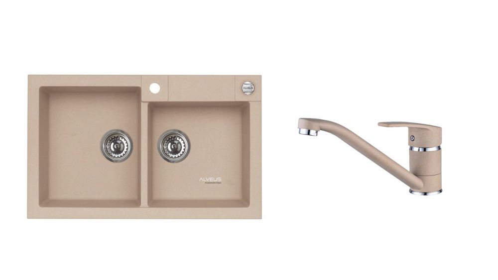 Vestavěný dřez, univerzál. Provedení : granitový dřez Vnější rozměr: 780 x 480 mm Rozměr vaničky: 340 x 400 x 180 mm 340 x 350 x 180 mm Exentrický sítkový ventil 3 1/2 s přepadem, sifon pro úsporu místa s odbočkou na myčku Úchyty a těsnění pro upevnění dřezu v balení S otvorem pro baterii Návod pro instalaci v obrázcích na obale Instalace do skříňky o šířce 800 mm Váha: 21,45 kg Rozměr balení (mm): 865x560x220 Baterie NINA Vysokotlaká baterie otočné ramínko rozměr:237 x 111 mm provedení: barevný nástřik