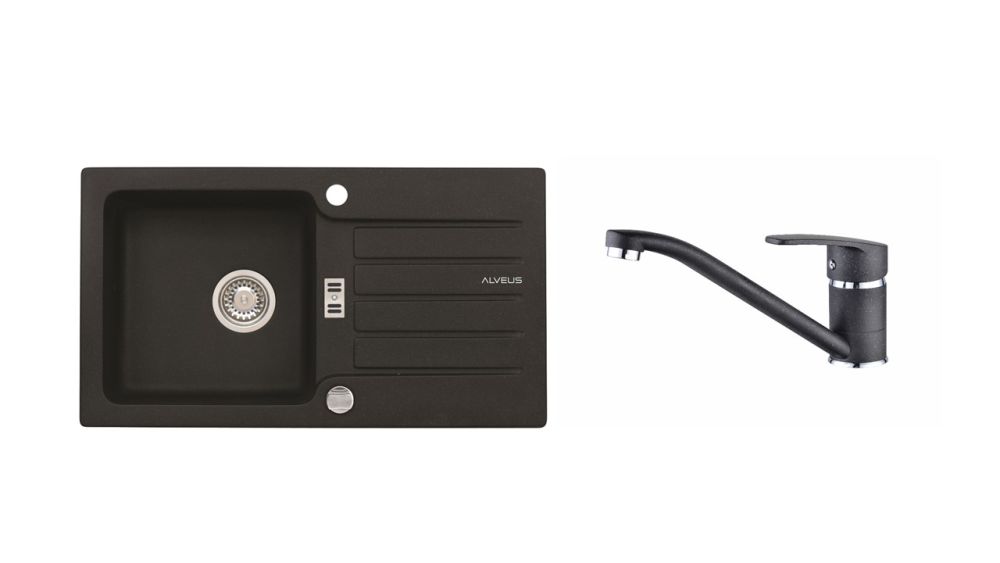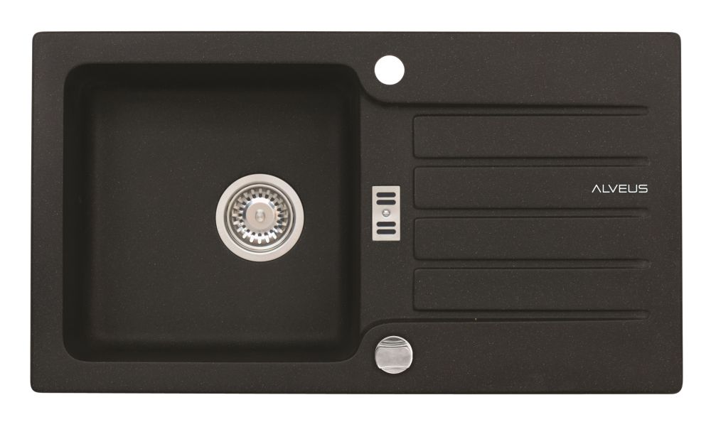 Vestavěný dřez, univerzál. Provedení : granitový dřez s odkapem Vnější rozměr: 775 x 430 mm Rozměr vaničky: 350x350x160 mm Exentický sítkový ventil 3 1/2 s přepadem, sifon pro úsporu místa s odbočkou na myčku Úchyty a těsnění pro upevnění dřezu v balení S otvorem pro baterii Návod pro instalaci v obrázcích na obale Instalace do skříňky o šířce 500 mm Váha: 17,1 kg Rozměr balení (mm): 864x560x220 Baterie NINA Vysokotlaká baterie otočné ramínko rozměr:237 x 111 mm provedení: barevný nástřik