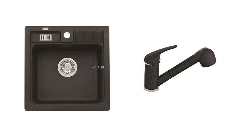 Vestavěný dřez, univerzál. Provedení : granitový dřez Vnější rozměr: 465 x 465 mm Rozměr vaničky: 380x320x180 mm sítkový ventil 3 1/2 s přepadem, sifon pro úsporu místa s odbočkou na myčku Úchyty a těsnění pro upevnění dřezu v balení S otvorem pro baterii Návod pro instalaci v obrázcích na obale Instalace do skříňky o šířce 450 mm Váha: 10,63 kg Rozměr balení (mm): 655x560x267 Baterie AM 20 Vysokotlaká baterie otočné ramínko vytahovací sprška rozměr:198 x 150 mm provedení: barevný nástřik