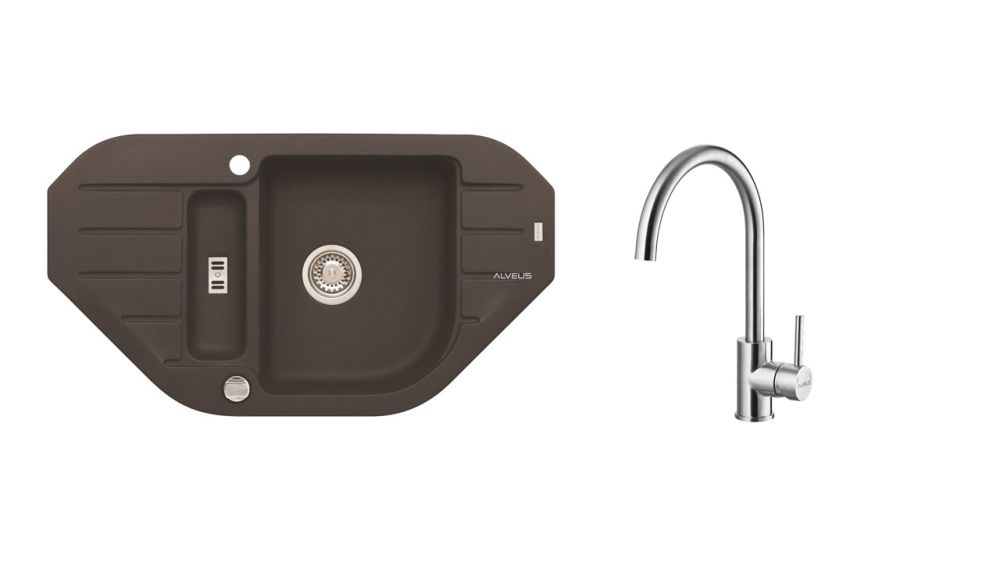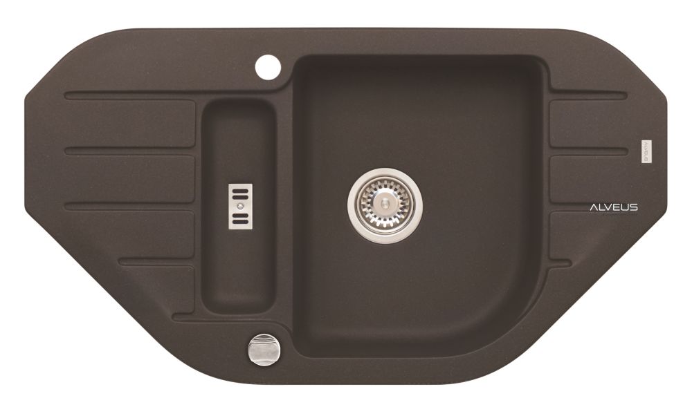 Vestavěný dřez, univerzál. Provedení : granitový dřez s odkapem Vnější rozměr: 900 x 500 mm Rozměr vaničky: 344x430x160 mm 100x295x70 mm Exentický sítkový ventil 3 1/2 s přepadem, sifon pro úsporu místa s odbočkou na myčku Úchyty a těsnění pro upevnění dřezu v balení S otvorem pro baterii Návod pro instalaci v obrázcích na obale Instalace do skříňky o šířce 600 mm, roh 900 mm Váha: 17,3 kg Rozměr balení (mm): 1033x607x220 Elza Vysokotlaká baterie otočné ramínko rozměr:216 x 351 mm provedení: BRS