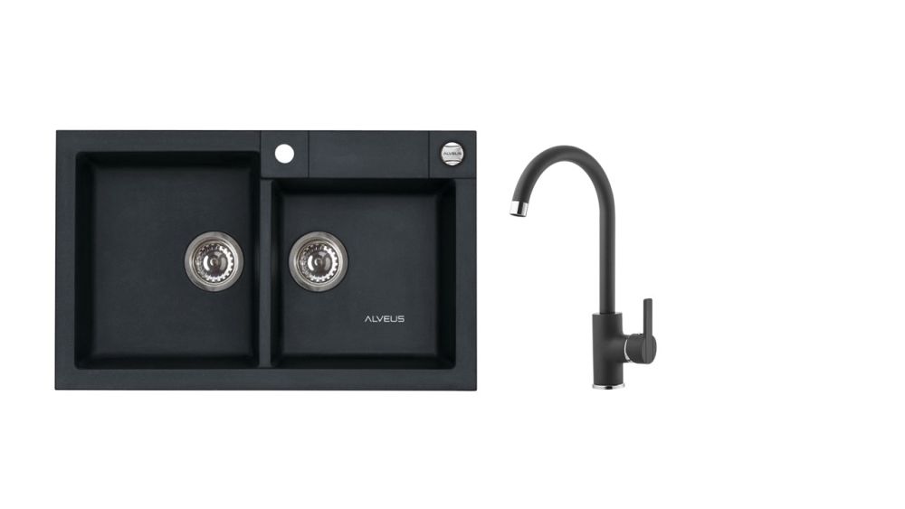 Vestavěný dřez, univerzál. Provedení : granitový dřez Vnější rozměr: 780 x 480 mm Rozměr vaničky: 340 x 400 x 180 mm 340 x 350 x 180 mm Exentrický sítkový ventil 3 1/2 s přepadem, sifon pro úsporu místa s odbočkou na myčku Úchyty a těsnění pro upevnění dřezu v balení S otvorem pro baterii Návod pro instalaci v obrázcích na obale Instalace do skříňky o šířce 800 mm Váha: 21,45 kg Rozměr balení (mm): 865x560x220 Baterie Tonia Vysokotlaká baterie otočné ramínko rozměr:214 x 331 mm provedení: barevný nástřik