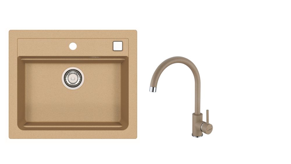 Vestavěný dřez, univerzál. Provedení : granitový dřez s odkapem Vnější rozměr: 590 x 500 mm Rozměr vaničky: 510 x 340 x 195 mm Exentrický sítkový ventil 3 1/2 s přepadem, sifon pro úsporu místa s odbočkou na myčku Úchyty a těsnění pro upevnění dřezu v balení S otvorem pro baterii Předfrézované dva otvory Návod pro instalaci v obrázcích na obale Instalace do skříňky při montáži: I- o šířce 600 mm, U- o šířce 800 mm Váha: 11,7 kg Rozměry balení (mm): 714x598x263 Vysokotlaká baterie Otočné ramínko Provedení: barevný nástřik Rozměr: 216 x 351 mm