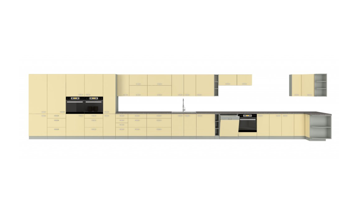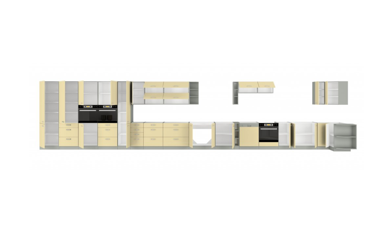Skříňky kuchyňského systému jsou variabilní a můžete si je tak poskládat stejně jako na fotografiích nebo jakkoliv jinak dle vašich rozměrů, které máte v kuchyni k dispozici.
