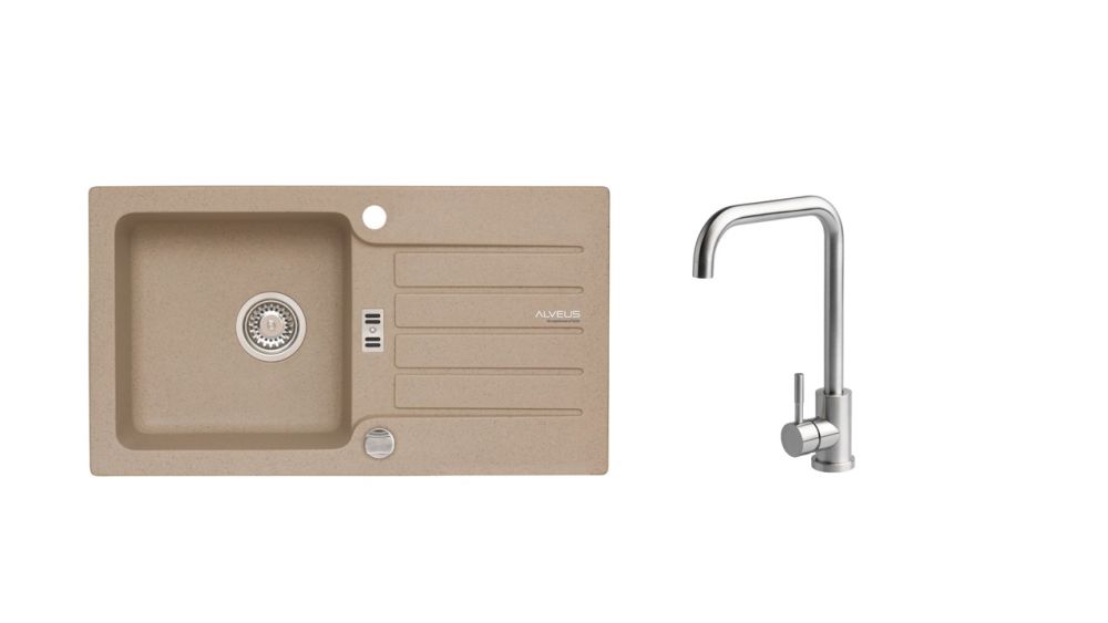Vestavěný dřez, univerzál. Provedení : granitový dřez s odkapem Vnější rozměr: 775 x 430 mm Rozměr vaničky: 350x350x160 mm Exentický sítkový ventil 3 1/2 s přepadem, sifon pro úsporu místa s odbočkou na myčku Úchyty a těsnění pro upevnění dřezu v balení S otvorem pro baterii Návod pro instalaci v obrázcích na obale Instalace do skříňky o šířce 500 mm Váha: 17,1 kg Rozměr balení (mm): 864x560x220 Baterie Angel Chrom Stojánková baterie Otočné ramínko Rozměr: 215x342 mm Provední chrom