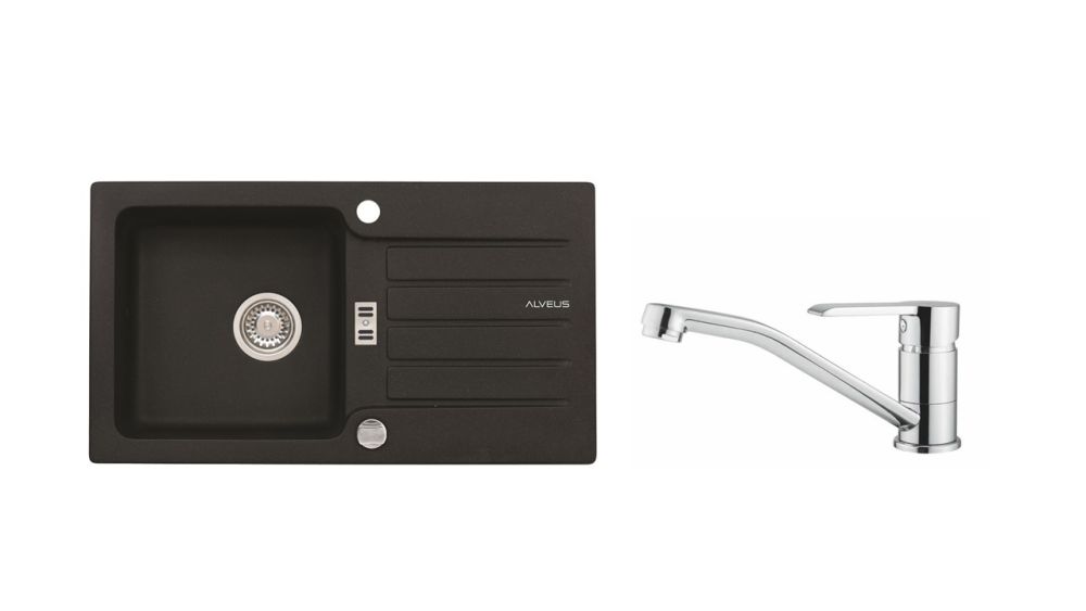 Vestavěný dřez, univerzál. Provedení : granitový dřez s odkapem Vnější rozměr: 775 x 430 mm Rozměr vaničky: 350x350x160 mm Exentický sítkový ventil 3 1/2 s přepadem, sifon pro úsporu místa s odbočkou na myčku Úchyty a těsnění pro upevnění dřezu v balení S otvorem pro baterii Návod pro instalaci v obrázcích na obale Instalace do skříňky o šířce 500 mm Váha: 17,1 kg Rozměr balení (mm): 864x560x220 Baterie Ruta Chrom Stojánková baterie Otočné ramínko Rozměr: 215x328 mm Provední chrom