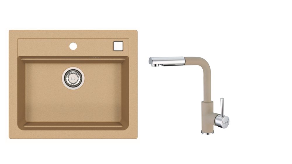 Vestavěný dřez, univerzál. Provedení : granitový dřez s odkapem Vnější rozměr: 590 x 500 mm Rozměr vaničky: 510 x 340 x 195 mm Exentrický sítkový ventil 3 1/2 s přepadem, sifon pro úsporu místa s odbočkou na myčku Úchyty a těsnění pro upevnění dřezu v balení S otvorem pro baterii Předfrézované dva otvory Návod pro instalaci v obrázcích na obale Instalace do skříňky při montáži: I- o šířce 600 mm, U- o šířce 800 mm Váha: 11,7 kg Rozměry balení (mm): 714x598x263 Vysokotlaká baterie otočné ramínko vytahovací sprška rozměr:206 x 268 mm provedení: barevný nástřik