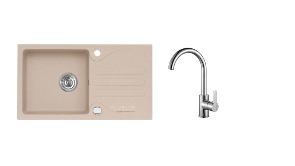 Vestavěný dřez, univerzál. Provedení : granitový dřez - bílý Vnější rozměr: 770x430 mm Rozměr vaničky: 380x370x150 mm Excentrický sítkový ventil 3 1/2 s přepadem, sifon pro úsporu místa s odbočkou na myčku. Úchyty a těsnění pro upevnění dřezu v balení S otvorem pro baterii Návod pro instalaci v obrázcích na obale Instalace do skříňky o šířce 500 mm Váha: 13,75 kg Rozměr balení (mm): 865x560x220 Baterie Tonia Vysokotlaká baterie otočné ramínko rozměr:214 x 331 mm provedení:chrom