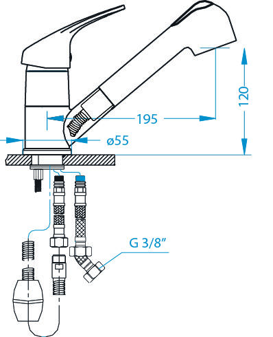 Exentický sítkový ventil 3 1/2 s přepadem, sifon pro úsporu místa s odbočkou na myčku
