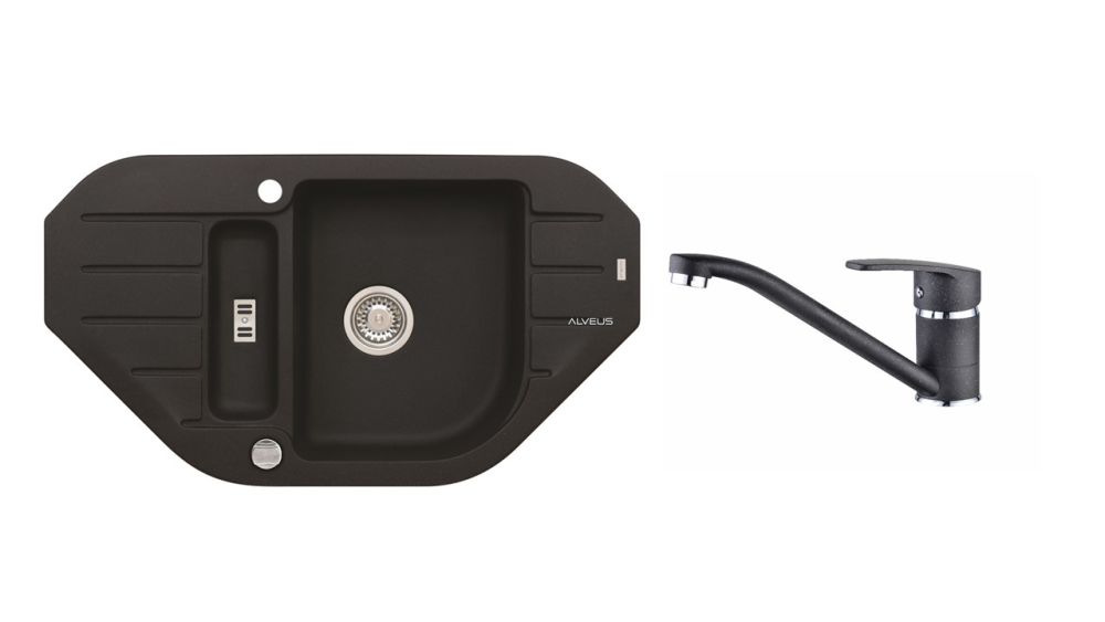 Vestavěný dřez, univerzál. Provedení : granitový dřez s odkapem Vnější rozměr: 900 x 500 mm Rozměr vaničky: 344x430x160 mm 100x295x70 mm Exentický sítkový ventil 3 1/2 s přepadem, sifon pro úsporu místa s odbočkou na myčku Úchyty a těsnění pro upevnění dřezu v balení S otvorem pro baterii Návod pro instalaci v obrázcích na obale Instalace do skříňky o šířce 600 mm, roh 900 mm Váha: 17,3 kg Rozměry balení (mm): 1033x607x220 Baterie NINA Vysokotlaká baterie otočné ramínko rozměr:237 x 111 mm provedení: barevný nástřik