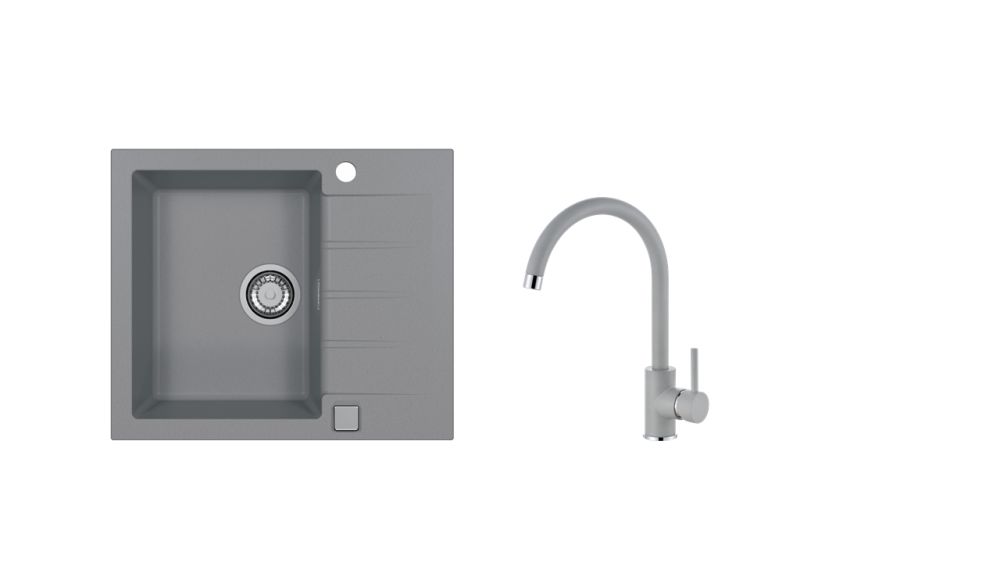 Vestavěný dřez, univerzál. Provedení : granitový dřez s odkapem Vnější rozměr: 590 x 500 mm Rozměr vaničky: 325 x 425 x 200 mm Exentrický sítkový ventil 3 1/2 s přepadem, sifon pro úsporu místa s odbočkou na myčku Úchyty a těsnění pro upevnění dřezu v balení S otvorem pro baterii Návod pro instalaci v obrázcích na obale Instalace do skříňky o šířce 450 mm Váha: 11,5 kg Rozměr balení (mm): 714x598x263 Baterie Roxa Vysokotlaká baterie otočné ramínko rozměr: 216 x 351 mm provedení: chrom/ barevný nástřik Granital Váha: 2 Kg