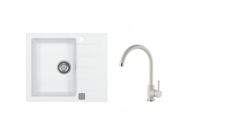 Vestavěný dřez, univerzál. Provedení : granitový dřez s odkapem Vnější rozměr: 590 x 500 mm Rozměr vaničky: 325 x 425 x 200 mm Exentrický sítkový ventil 3 1/2 s přepadem, sifon pro úsporu místa s odbočkou na myčku Úchyty a těsnění pro upevnění dřezu v balení S otvorem pro baterii Návod pro instalaci v obrázcích na obale Instalace do skříňky o šířce 450 mm Váha: 11,5 kg Rozměr balení (mm): 714x598x263 Baterie Roxa Vysokotlaká baterie otočné ramínko rozměr: 216 x 351 mm provedení: chrom/ barevný nástřik Granital Váha: 2 Kg