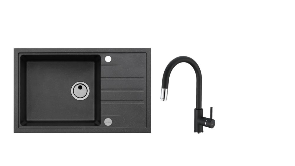 Vestavěný dřez, univerzál. Provedení : granitový dřez s odkapem Vnější rozměr: 595 x 475 mm Rozměr vaničky: 320 x 400 x 160 mm Exentrický sítkový ventil 3 1/2 s přepadem, sifon pro úsporu místa s odbočkou na myčku Úchyty a těsnění pro upevnění dřezu v balení S otvorem pro baterii Návod pro instalaci v obrázcích na obale Instalace do skříňky o šířce 450 mm Váha: 12,27 kg Rozměry balení (mm): 705x565x225 Vysokotlaká baterie otočné ramínko vytahovací sprška rozměr:207 x 380 mm provedení: barevný nástřik