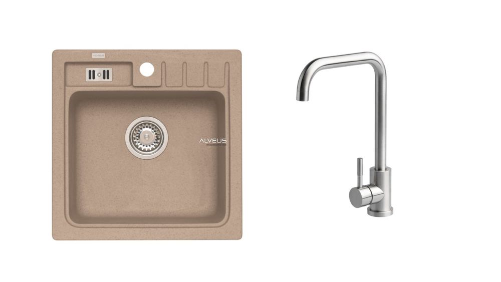 Vestavěný dřez, univerzál. Provedení : granitový dřez Vnější rozměr: 465 x 465 mm Rozměr vaničky: 380x320x180 mm sítkový ventil 3 1/2 s přepadem, sifon pro úsporu místa s odbočkou na myčku Úchyty a těsnění pro upevnění dřezu v balení S otvorem pro baterii Návod pro instalaci v obrázcích na obale Instalace do skříňky o šířce 450 mm Váha: 10,63 kg Rozměr balení (mm): 655x560x267 Baterie Angel Chrom Stojánková baterie Otočné ramínko Rozměr: 215x342 mm Provední chrom