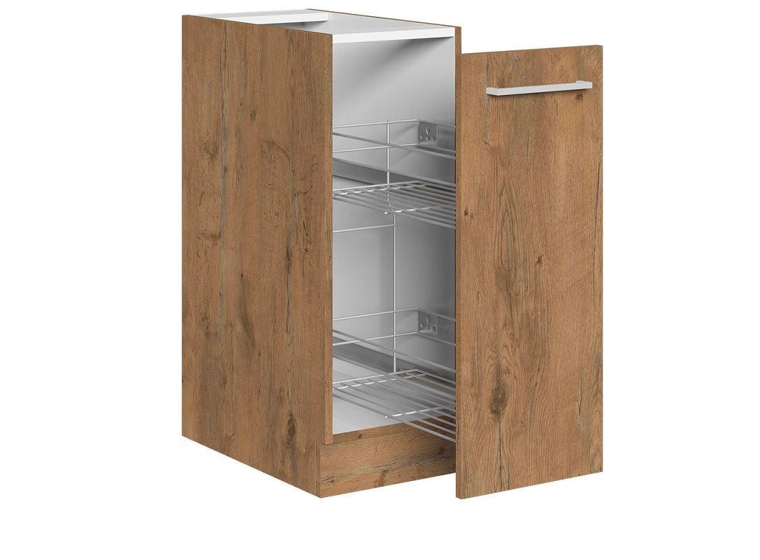 Spodní výsuvný kargo koš do kuchyně ze sektorového systému VIGGO o rozměru 30 x 52 x 82 cm. Kvalitní a praktické kuchyňské skříňky jsou vhodné do každé kuchyně a dokonale využijí každý část prostoru. Kuchyňské skříňky pro kuchyňskou linku bychom mohli rozdělit na tři základní typy skříněk: spodní kuchyňské skříňky, horní kuchyňské skříňky a rohové kuchyňské skříňky. Správnou kombinací těchto typů skříněk si dokážete vytvořit kuchyň podle vašich představ. Skříňka je dodávána bez pracovní desky.