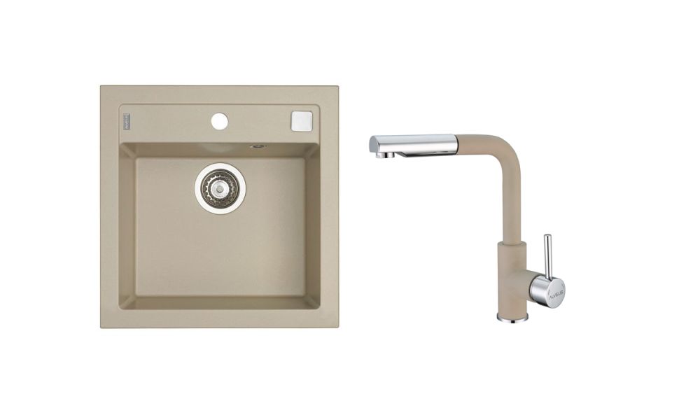 Vestavěný nebo dřez se spodní montáží, univerzál. Provedení : granitový dřez Vnější rozměr: 520x510 mm Rozměr vaničky: 440x350x200 mm Excentrický sítkový ventil 3 1/2 s přepadem, sifon pro úsporu místa s odbočkou na myčku. Úchyty a těsnění pro upevnění dřezu v balení S otvorem pro baterii Předfrézovaný třetí otvor pro dávkovač saponátů Návod pro instalaci v obrázcích na obale Instalace do skříňky o šířce u montáže I: 500 mm U: 600 mm Váha: 12,7 kg Rozměr balení (mm): 695x560x267 Vysokotlaká baterie otočné ramínko vytahovací sprška rozměr:206 x 268 mm provedení: barevný nástřik