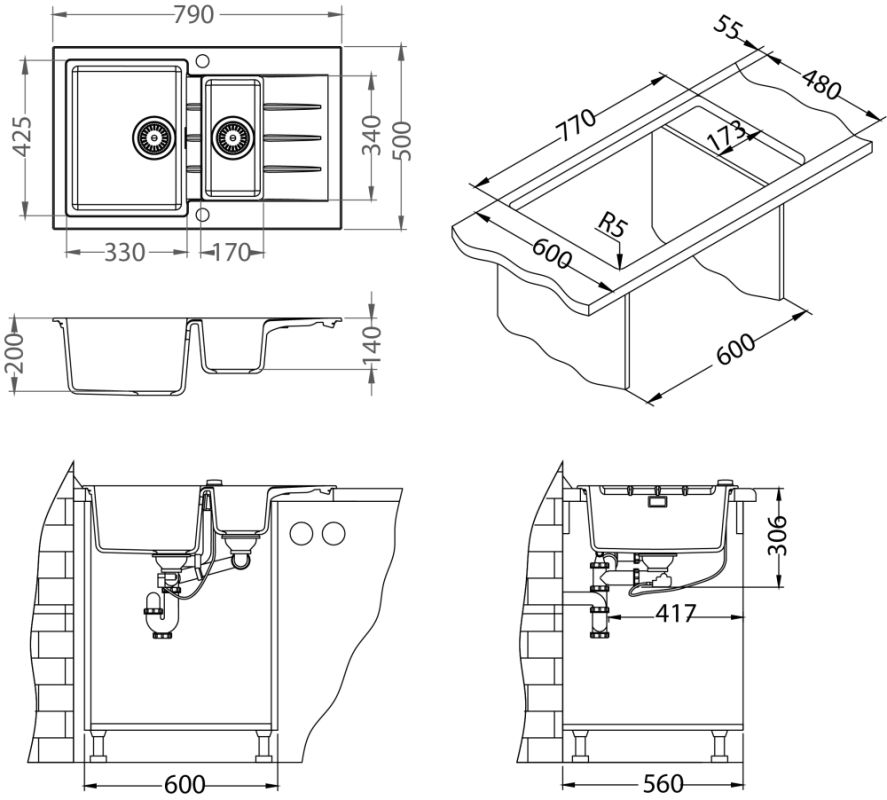 Vestavěný dřez, univerzál.