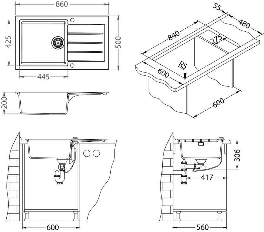 Vestavěný dřez, univerzál.