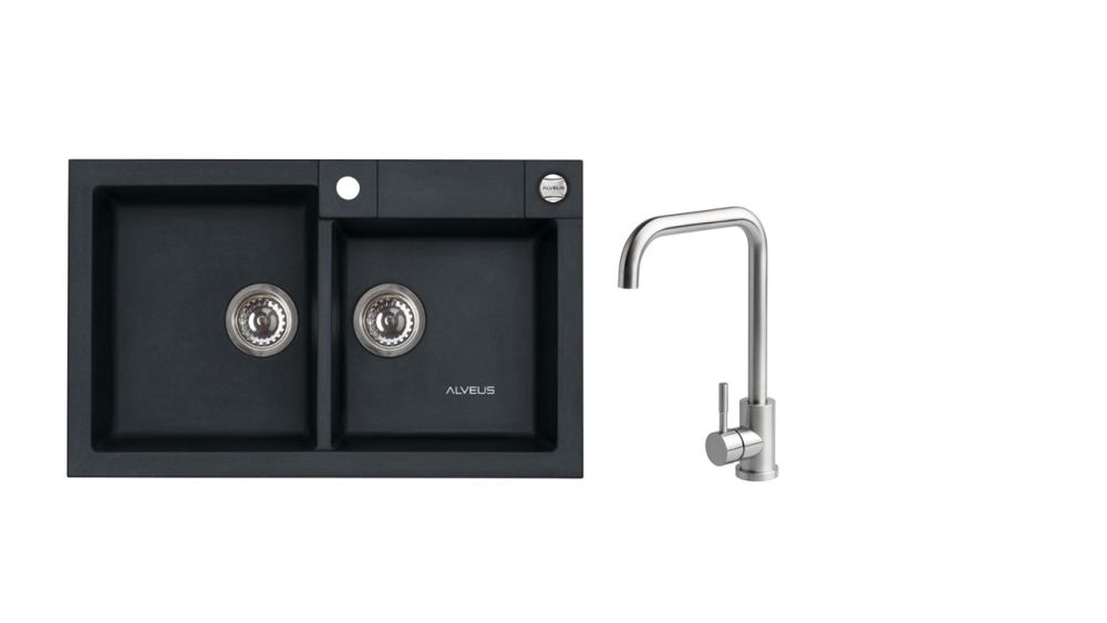 Vestavěný dřez, univerzál. Provedení : granitový dřez Vnější rozměr: 780 x 480 mm Rozměr vaničky: 340 x 400 x 180 mm 340 x 350 x 180 mm Exentrický sítkový ventil 3 1/2 s přepadem, sifon pro úsporu místa s odbočkou na myčku Úchyty a těsnění pro upevnění dřezu v balení S otvorem pro baterii Návod pro instalaci v obrázcích na obale Instalace do skříňky o šířce 800 mm Váha: 21,45 kg Rozměr balení (mm): 865x560x220 Baterie Angel Chrom Stojánková baterie Otočné ramínko Rozměr: 215x342 mm Provední chrom