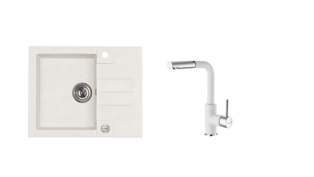 Vestavěný dřez, univerzál. Provedení : granitový dřez s odkapem Vnější rozměr: 595 x 475 mm Rozměr vaničky: 320 x 400 x 160 mm Exentrický sítkový ventil 3 1/2 s přepadem, sifon pro úsporu místa s odbočkou na myčku Úchyty a těsnění pro upevnění dřezu v balení S otvorem pro baterii Návod pro instalaci v obrázcích na obale Instalace do skříňky o šířce 450 mm Váha: 12,27 kg Rozměry balení (mm): 705x565x225 Vysokotlaká baterie otočné ramínko vytahovací sprška rozměr:206 x 268 mm provedení: barevný nástřik