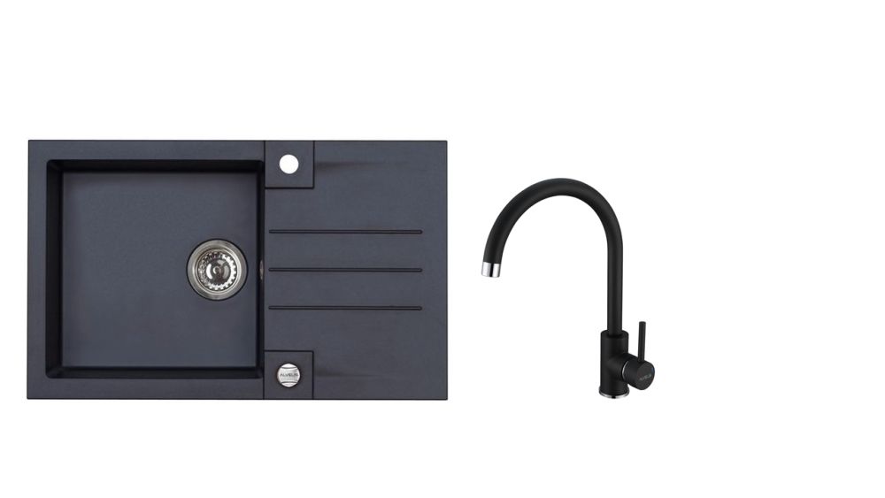 Vestavěný dřez, univerzál. Provedení : granitový dřez s odkapem Vnější rozměr: 780 x 480 mm Rozměr vaničky: 400 x 400 x 180 mm Exentrický sítkový ventil 3 1/2 s přepadem, sifon pro úsporu místa s odbočkou na myčku Úchyty a těsnění pro upevnění dřezu v balení S otvorem pro baterii Návod pro instalaci v obrázcích na obale Instalace do skříňky o šířce 600 mm Váha: 18,25 kg Rozměr balení (mm): 865x560x220 Baterie Roxa Vysokotlaká baterie otočné ramínko rozměr: 216 x 351 mm provedení: chrom/ barevný nástřik Granital Váha: 2 Kg