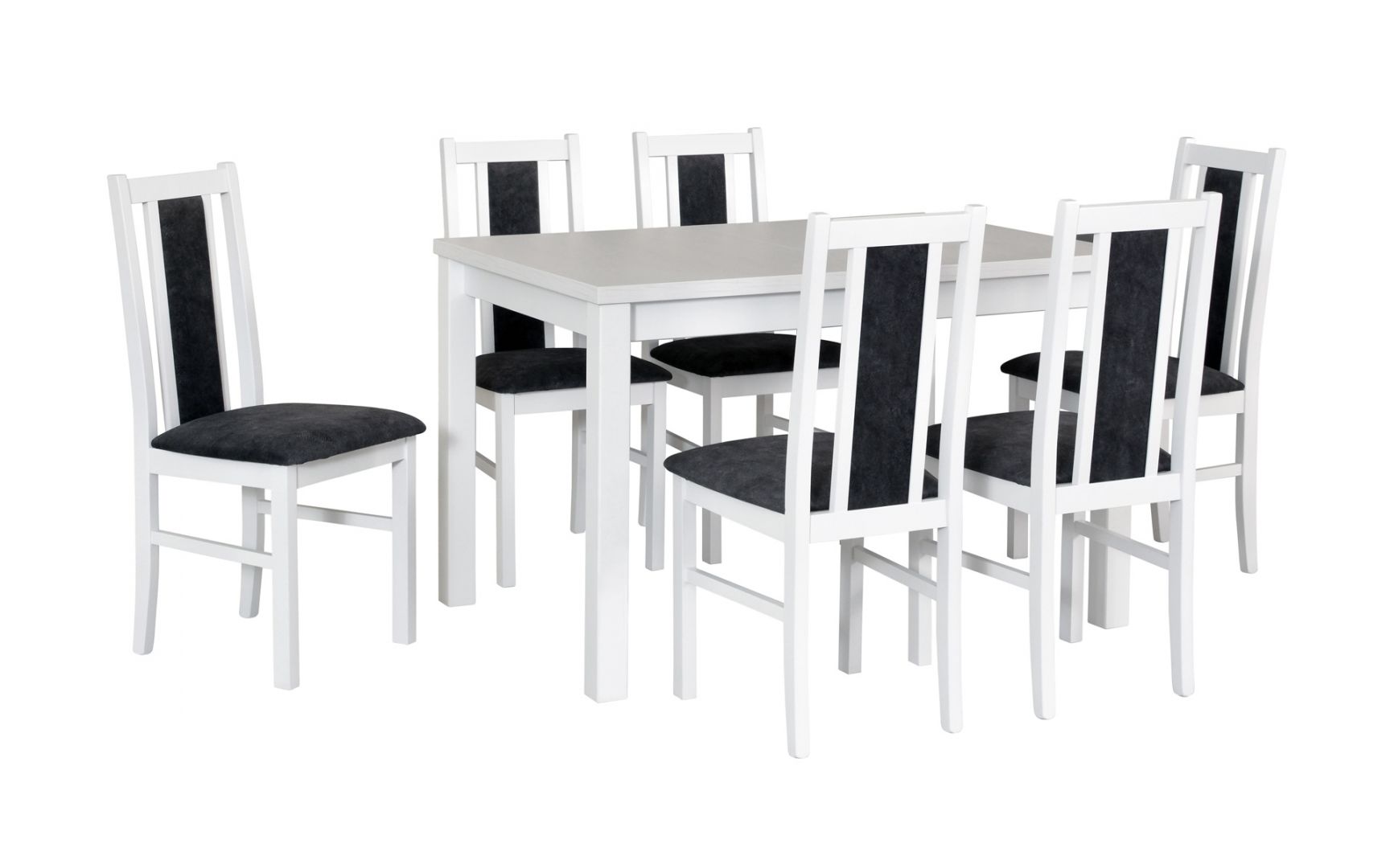 Jídelní set DX 18 - zahrnuje rozkládací jídelní stůl a 6 polstrovaných židlí pro všední i slavnostní chvíle. Robustná konstrukce je zárukou stability, pevnosti a dlouhé životnosti. V nabídce několik moderních barevných kombinací.