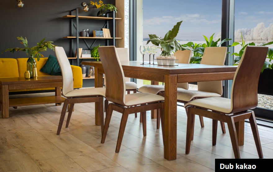 Pevný jídelní stůl je vyrobený z kvalitního dubového dřeva, které dodává mu pevnost, stabilitu a dlouhou životnost. Deska stolu má tloušťku 2,5 cm a je povrchově ošetřena několikavrstvým ekologickým a zdravotně nezávadným lakem. Provedení desky stolu lze vybírat ze dvou variant, v lamelovém provedení nebo v parketovém vzoru. Ukončení hrany desky stolu lze vybírat s přesahem S3 nebo bez přesahu S5. Nabízené rozměry umožňují zvolit si velikost stolu, která přesně vyhovuje Vašim potřebám na stolování. K dubovému stolu náleží židle ze stejné kolekce.