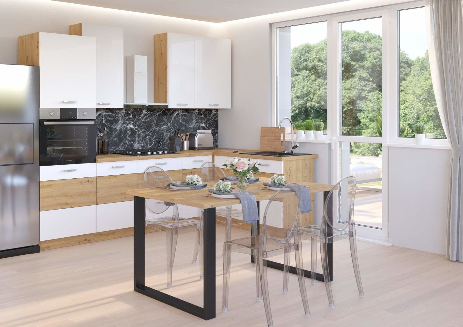 Jídelna je důležitým bodem domova, ve kterém se setkává celá rodina a přátelé, stojí za to věnovat se výběru vhodného stolu a investovat do něj. Kromě toho, že se jedná především o praktický kus nábytku, moderní jídelní stůl určuje celkový styl interiéru. Moderní a čistý design mu dává elegantní a sofistikovaný vzhled. Tento stůl je ideální do jídelny, ale také do zasedacích místností. U jídelního stolu můžou pohodlně stolovat až 4 osoby. Jídelní stůl je vyrobený z kombinaci černé lakované podnože v matném provedení a desky stolu vyrobené z kvalitního lamina v moderním barevném dekoru dub artisan. Užijte si krásnu bydlení bez kompromisu ohledně funkce.