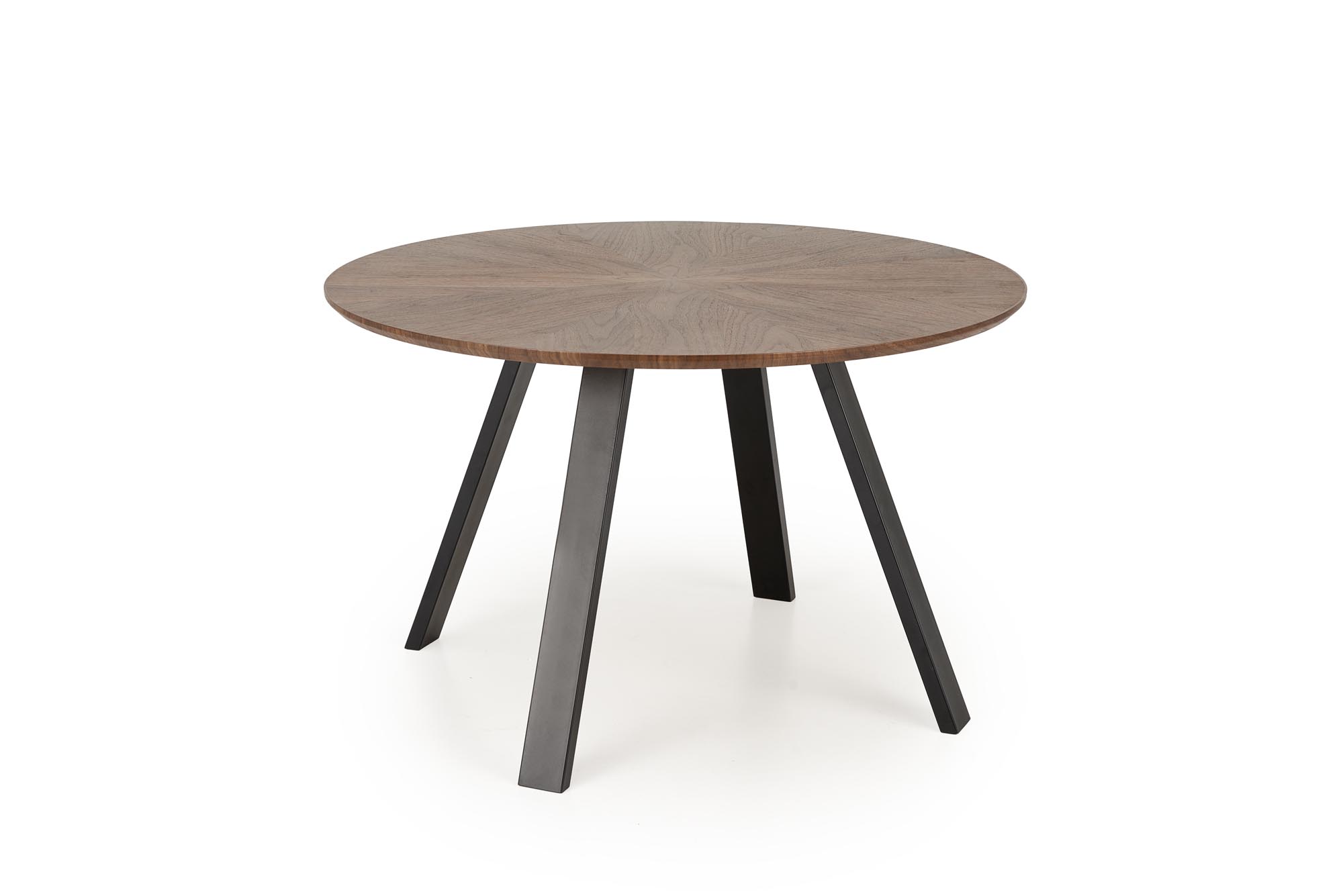 Jídelní stůl DANILO - je kulatý elegantní jídelní stůl vyroben z odolné MDF desky v dekoru ořechu a černě práškově lakované podnože. Stůl je vhodný do moderní jídelny.
