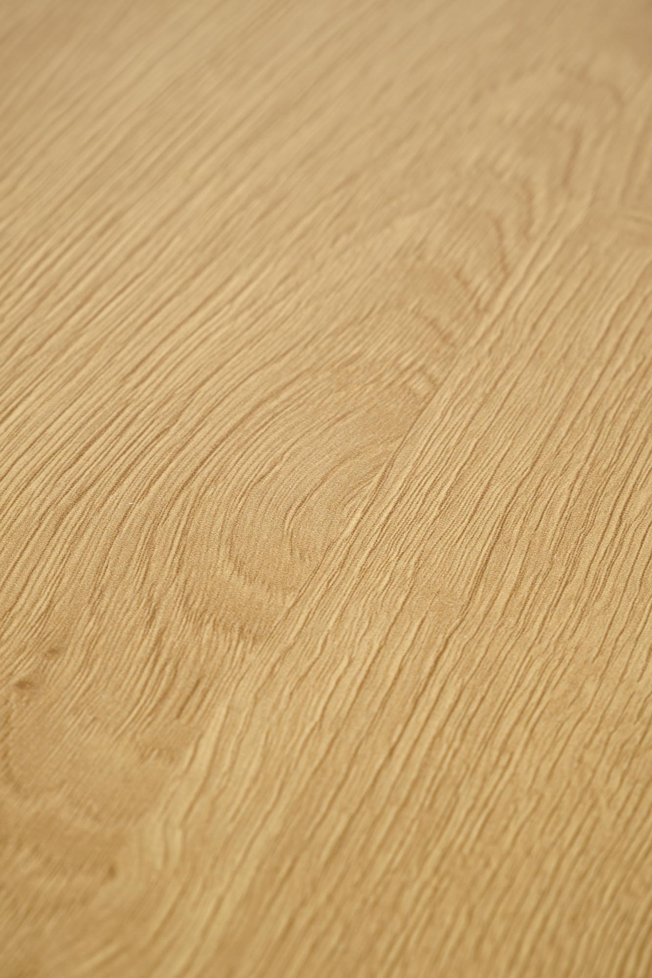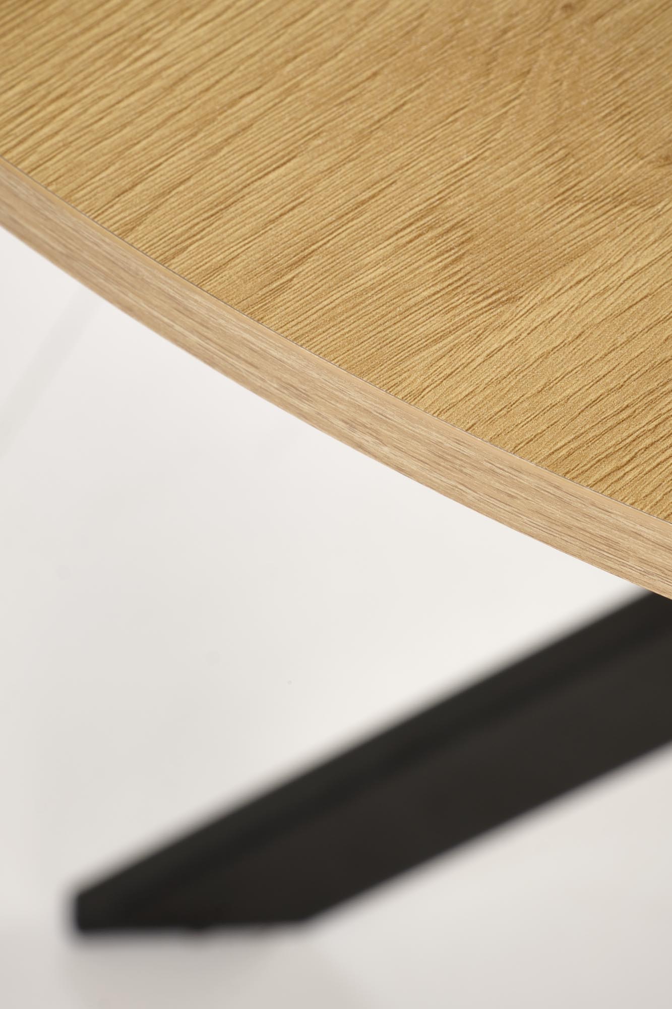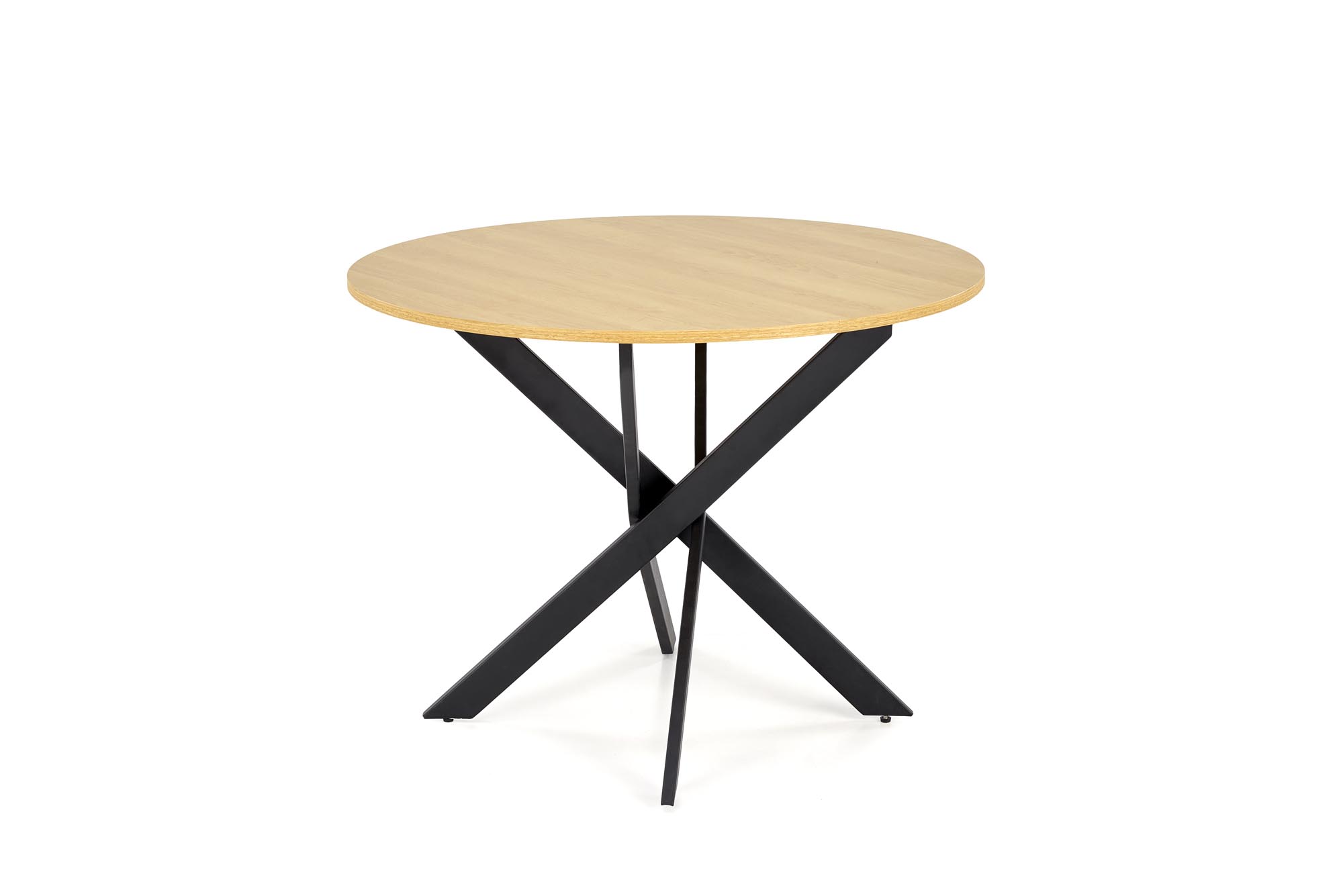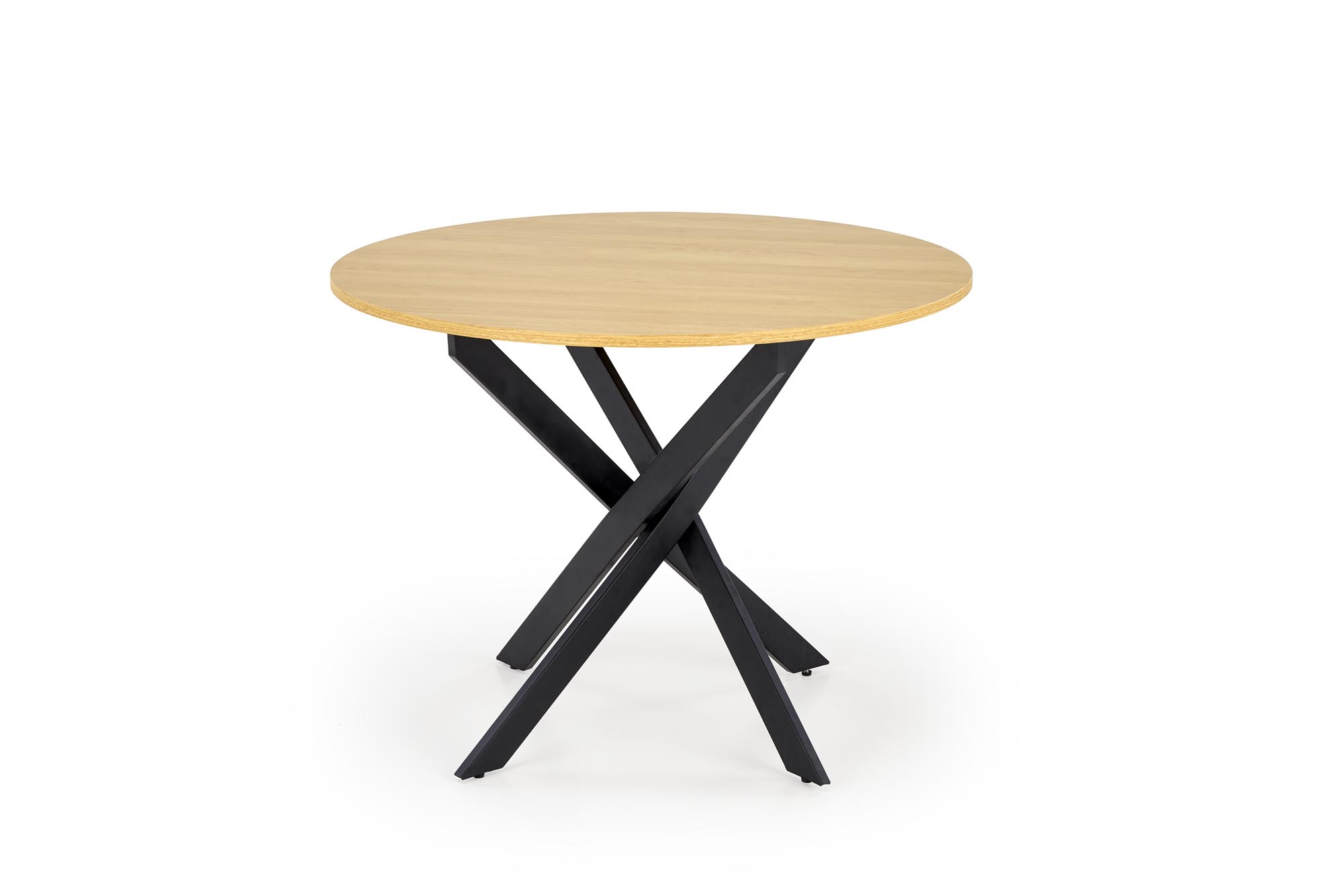 Jídelní stůl EDGAR - je moderní kulatý jídelní stůl vyroben z dýhované MDF desky v dekoru zlatého dubu a práškově lakované černé podnože.
