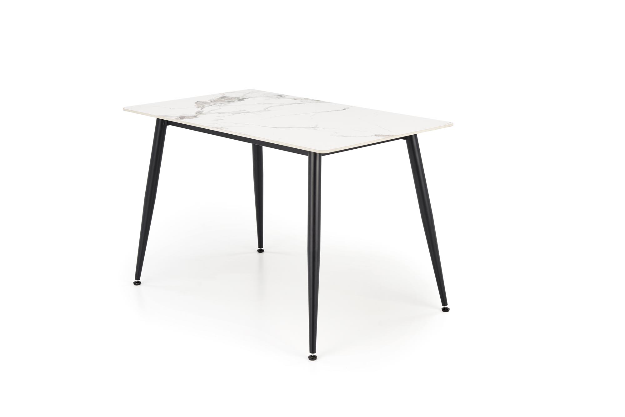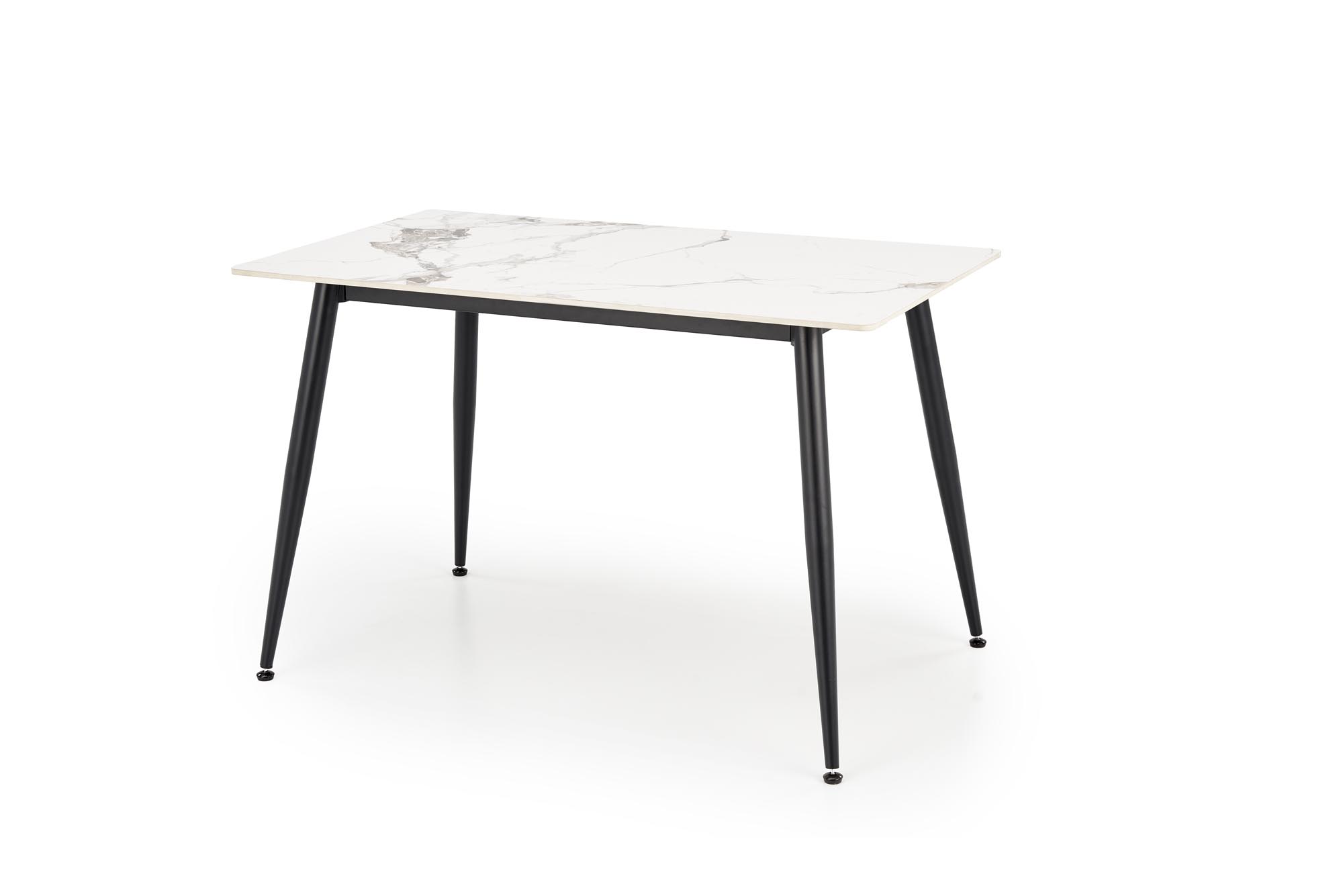 Jídelní stůl EMILIO - je moderní jídelní stůl vyroben v kombinaci slinutého kamene v dekoru bílého mramoru a práškově lakované černé podnože. Tento designový kousek se skvěle hodí do moderní jídelny.