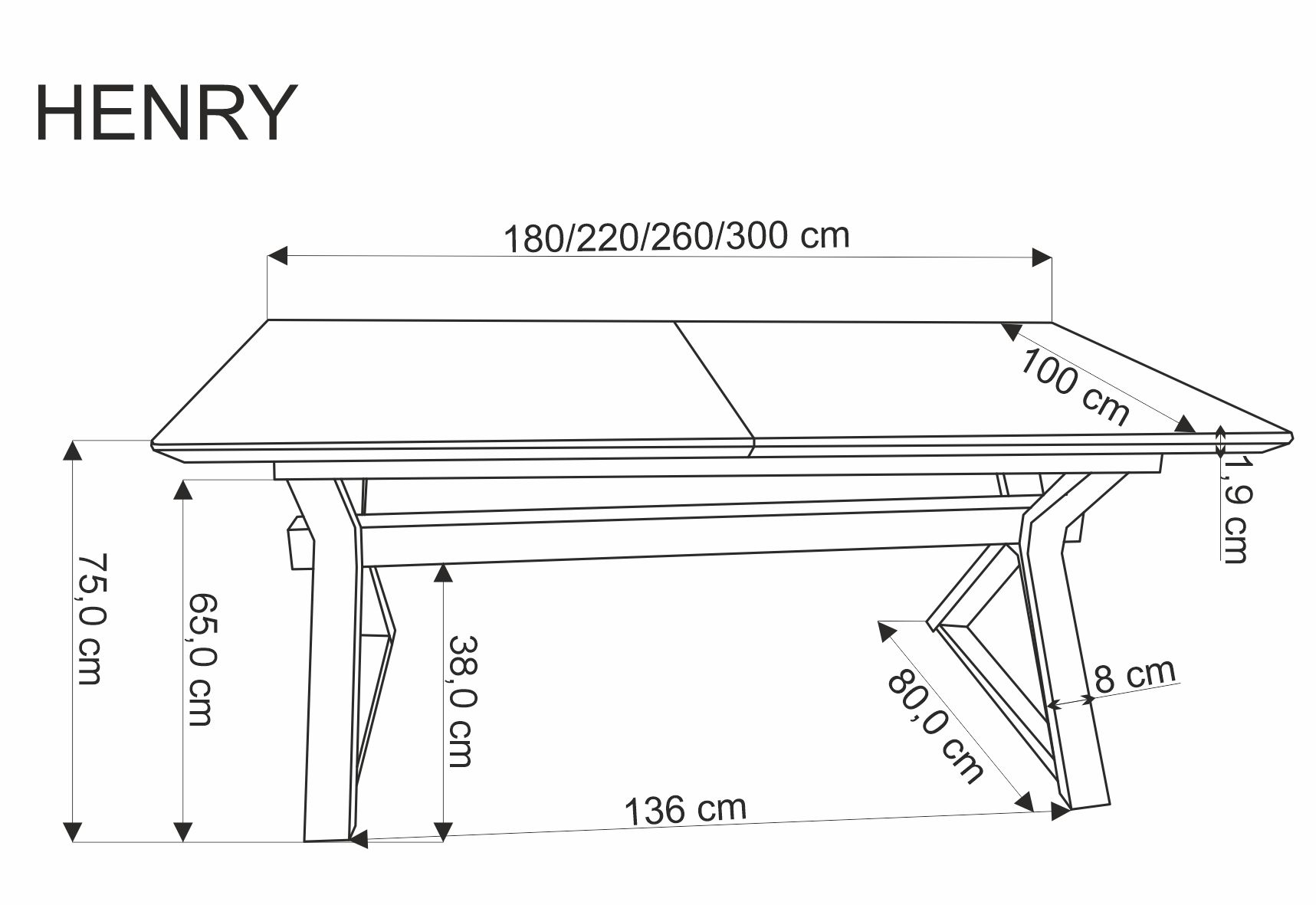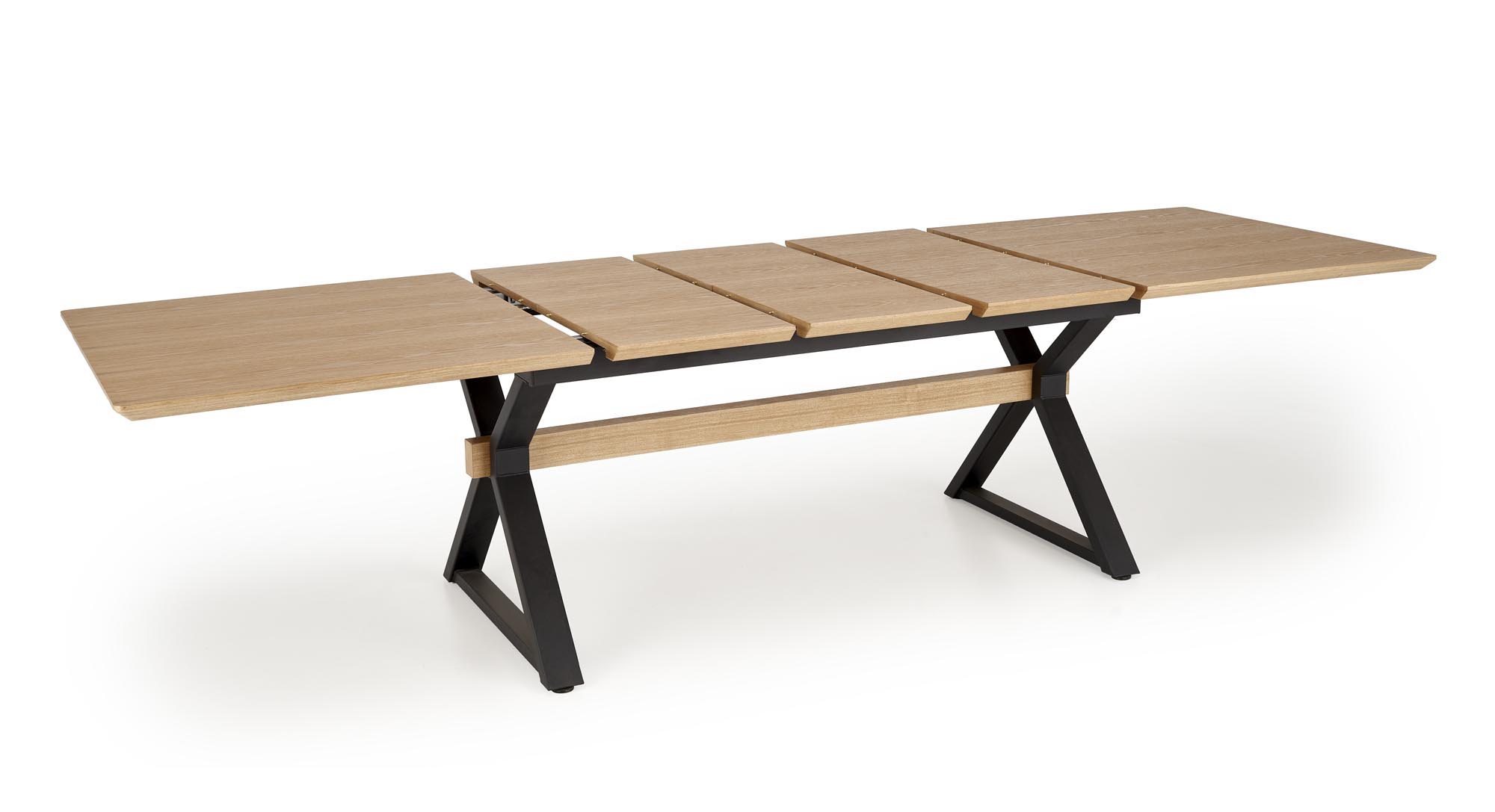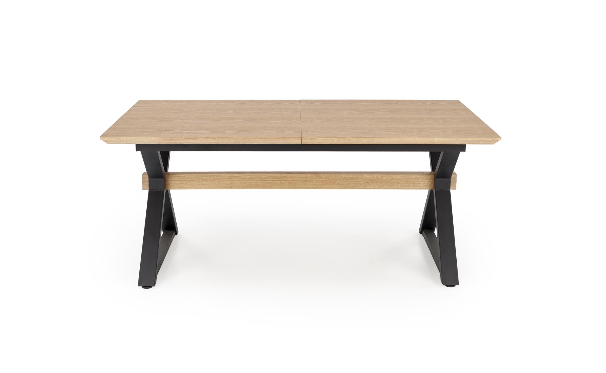 Jídelní stůl HENRY - je moderní rozkládací jídelní stůl vyroben v kombinace laminové MDF desky a dýhy v dekoru přírodního dřeva a robustní designové práškově lakované černé podnože.