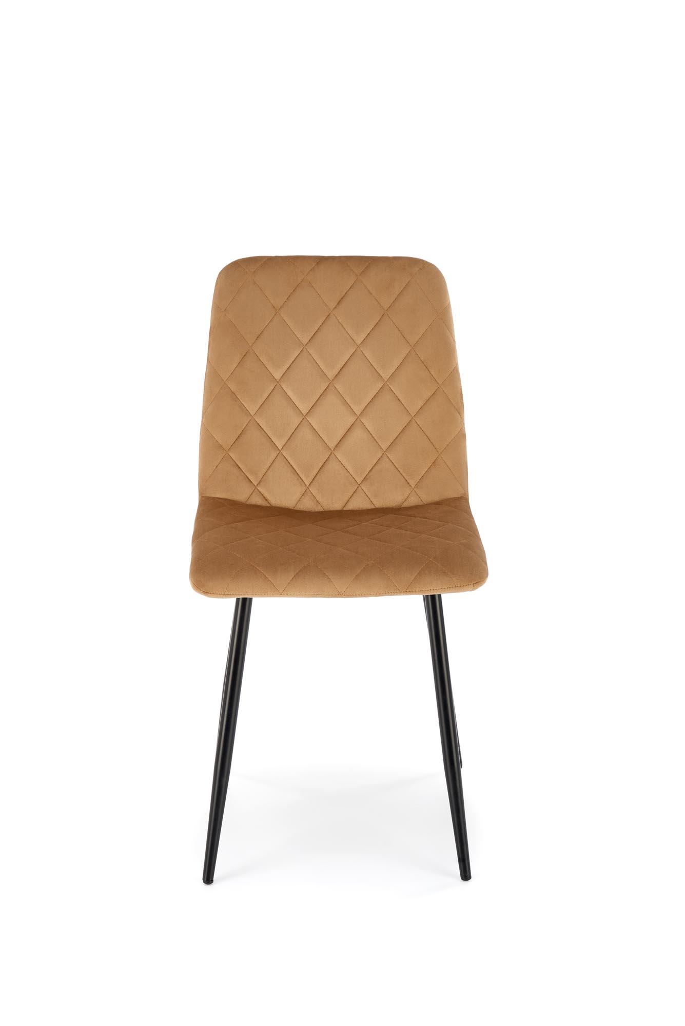 Jídelní židle K525 - je pohodlná a elegantní židle s kosočtvercovým prošíváním vyrobena v kombinaci lakované oceli a pohodlného sedáku a opěráku čalouněným sametovou látkou v béžové barvě.