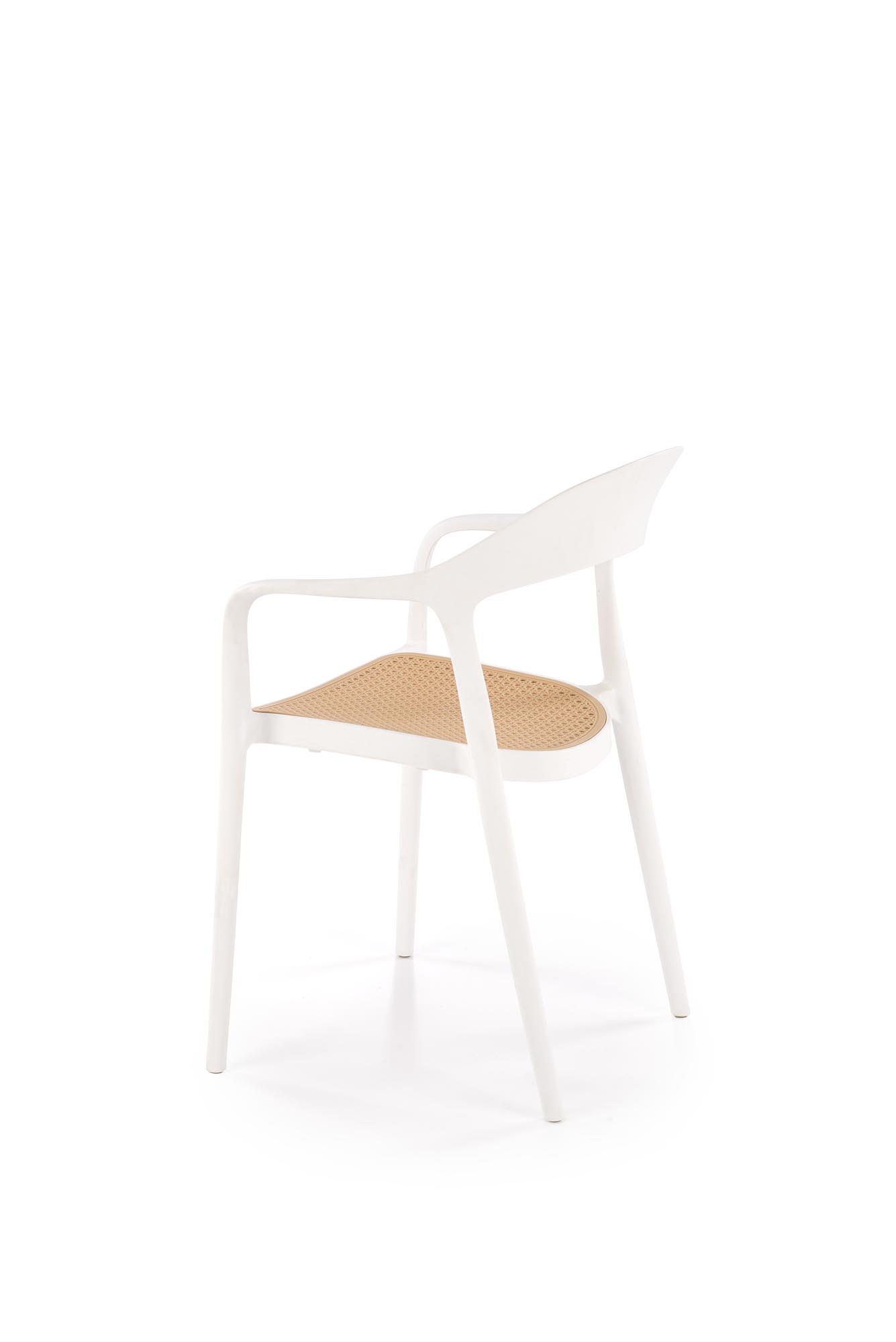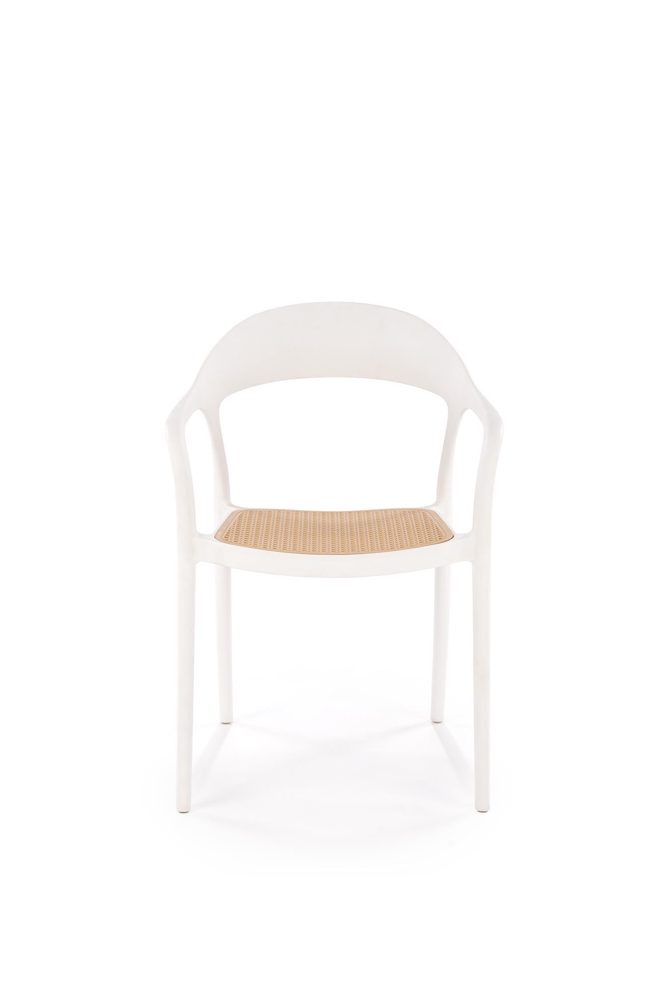 Jídelní židle K530 - je stylová stohovatelná pohodlná židle v retro designu vyrobena z plastu v kombinaci bílé a přírodní barvy.