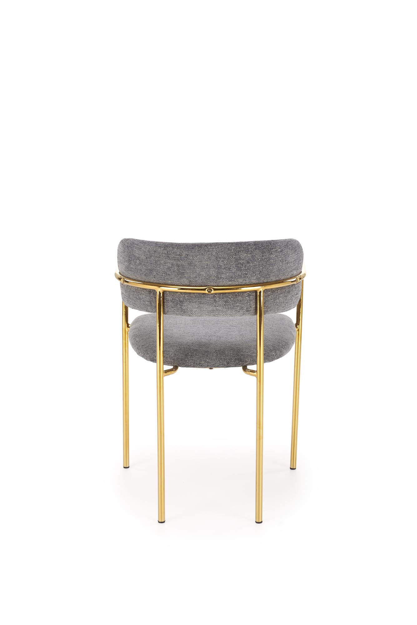 Jídelní židle K537 - je pohodlná jídelní židle v retro designu, vyrobena ze zlatě lakované oceli a čalouněného sedáku látkou RAVEN 10 v šedé barvě.