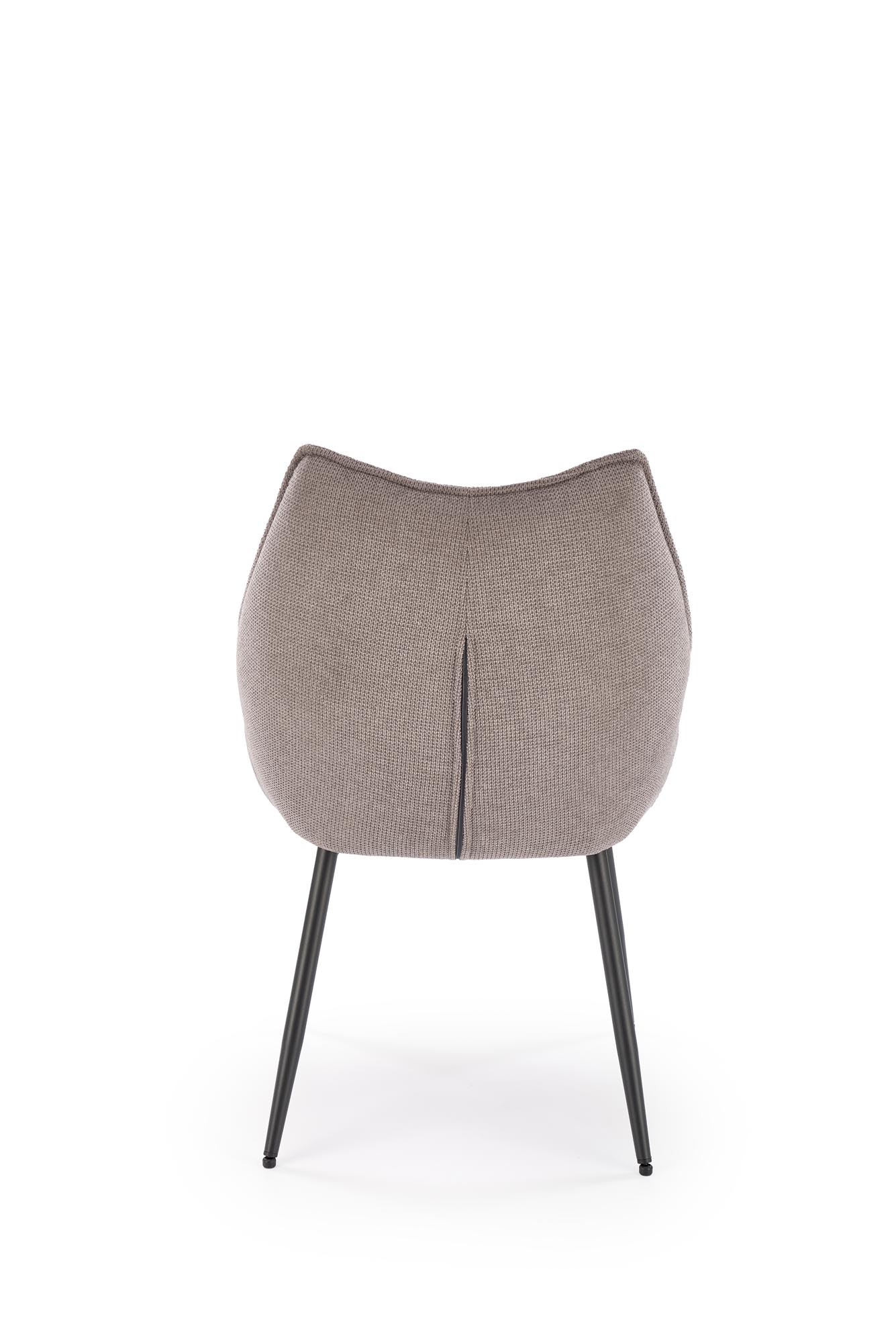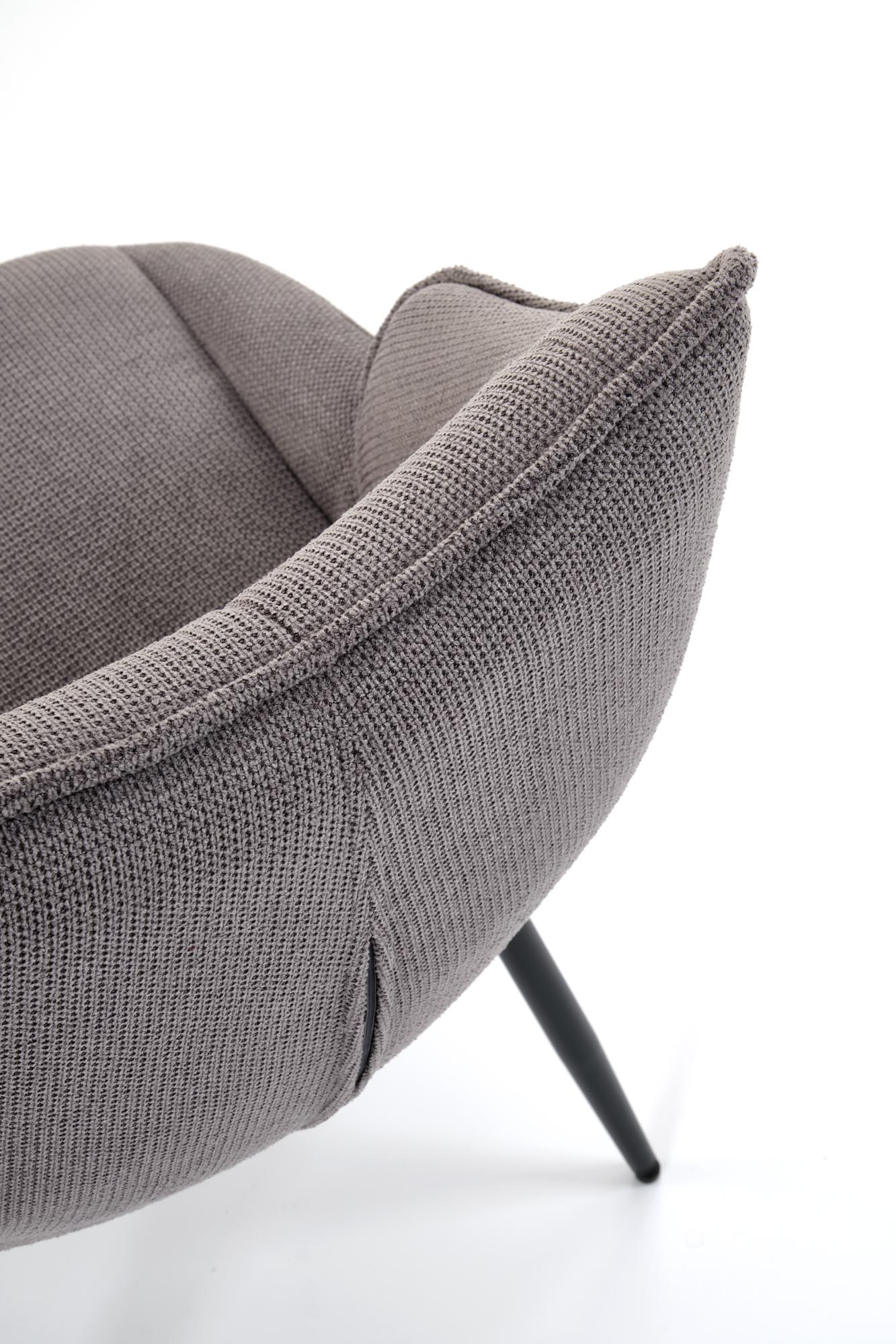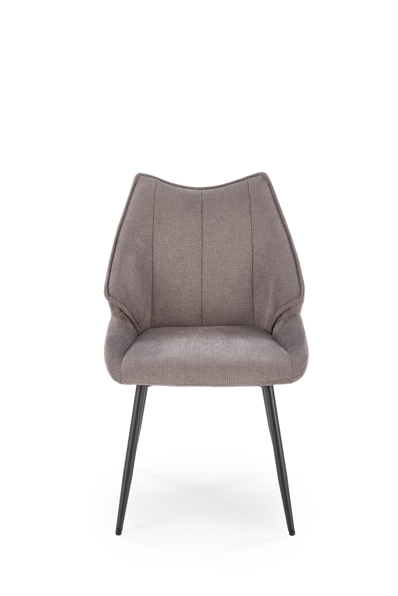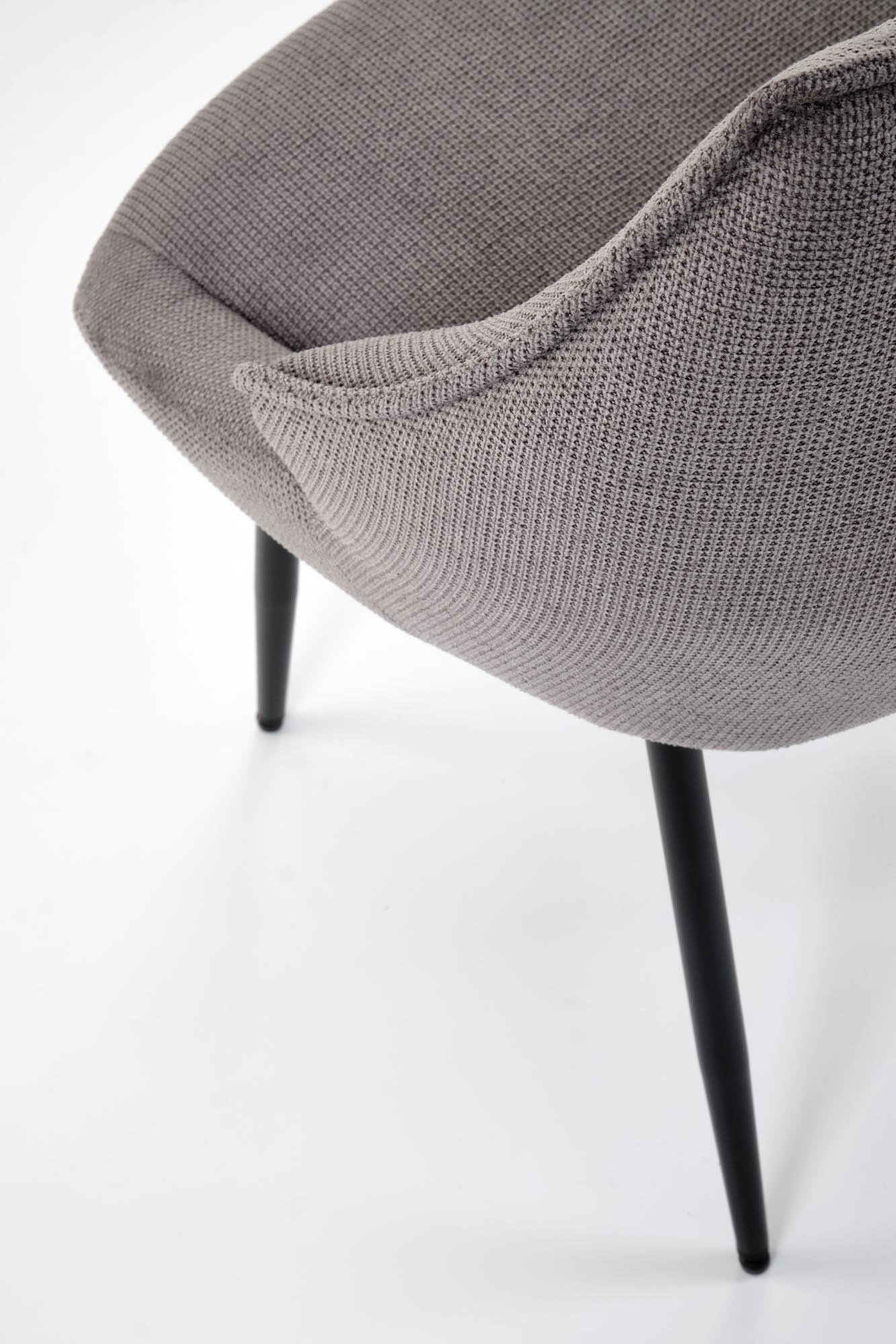 Jídelní židle K543 - je netypicky tvarovaná moderní židle vyrobena v kombinaci lakované oceli v černé barvě a pohodlného sedáku a opěráku čalouněným vysoce kvalitní látkou VARDO 11 v šedé barvě.