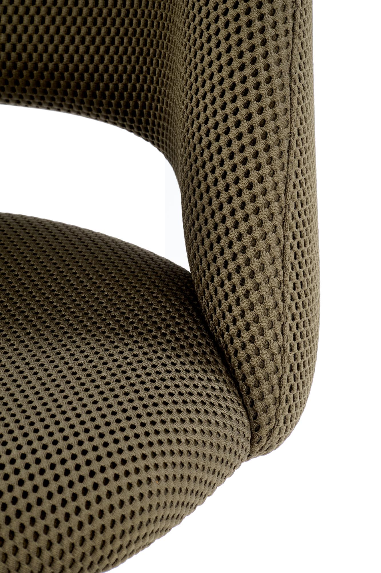 Jídelní židle K546 - je elegantní otočná židle vyrobena v kombinaci lakované oceli v černé barvě a pohodlného čalouněného sedáku v olivové barvě. Jídelní židle je potažena kvalitní membránovou látkou. Otočný mechanismus nabízí funkci 180 stupňů.