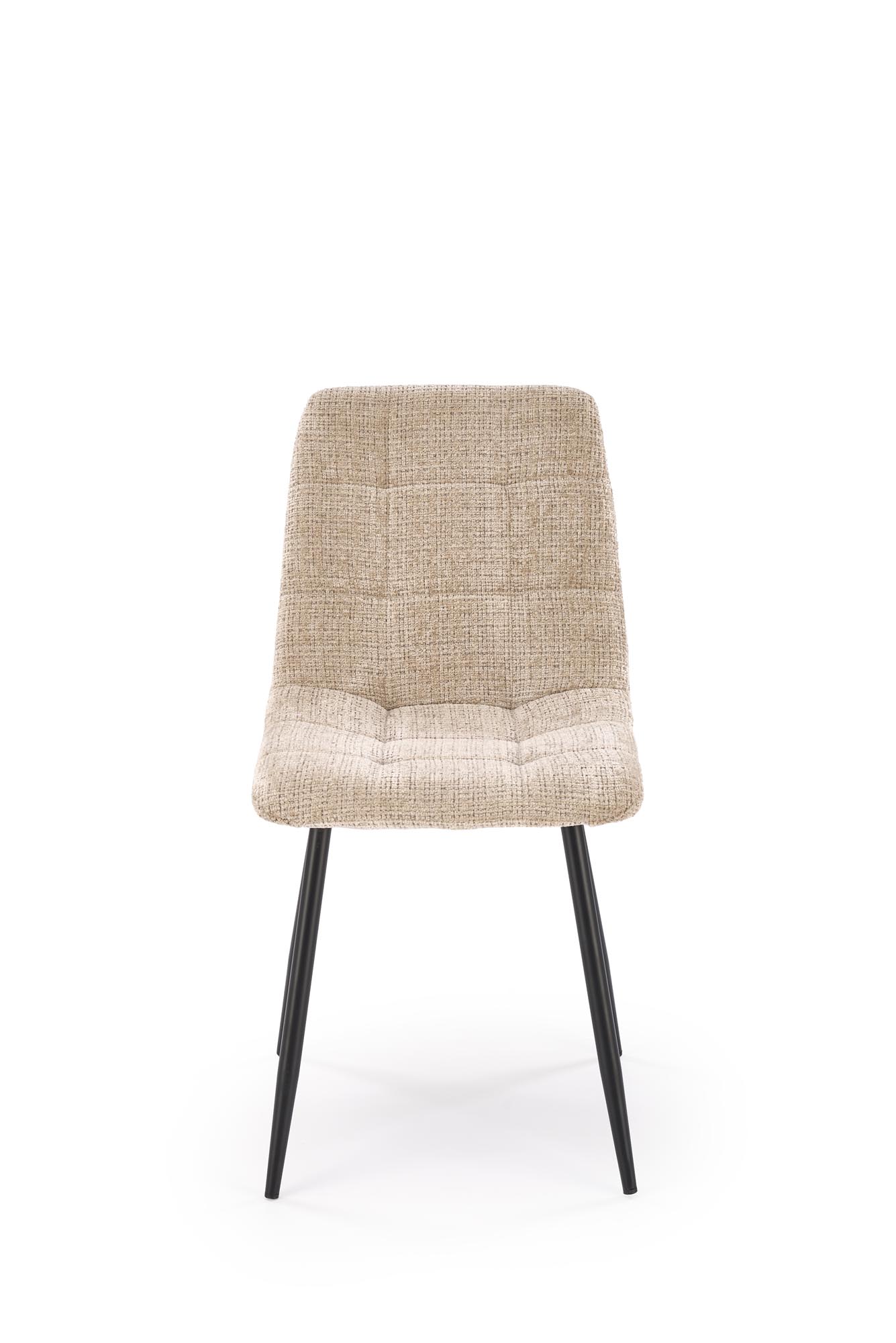 Jídelní židle K547 - je pohodlná a elegantní židle vyrobena v kombinaci lakované oceli a pohodlného sedáku a opěráku čalouněným silnou látkou v béžové barvě.